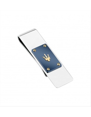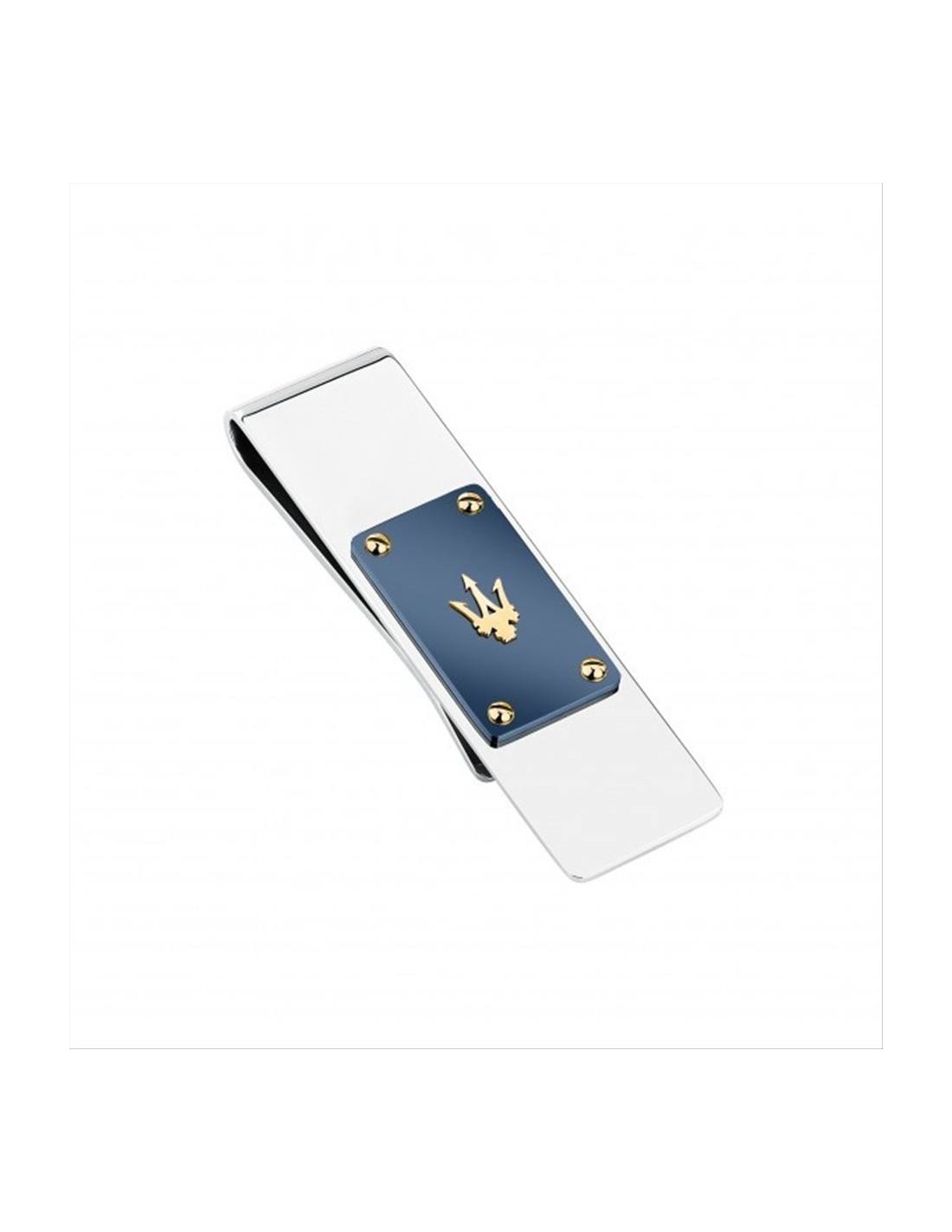 Fermasoldi Maserati , realizzato in acciaio inox con centrale blu e logo dorato.