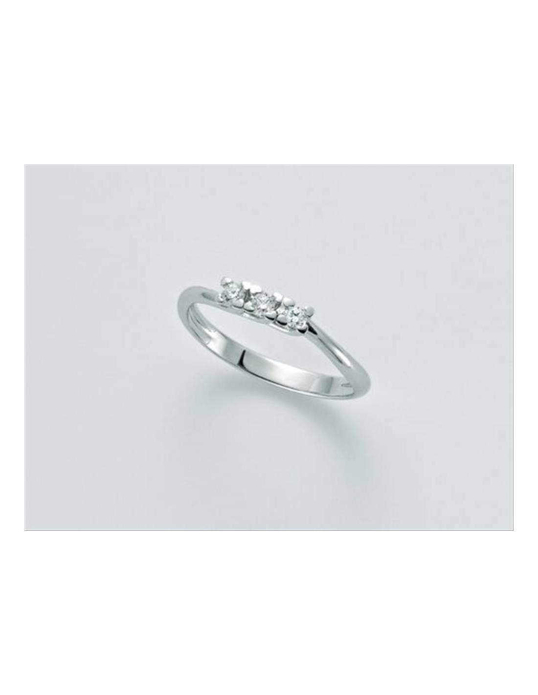 Anello Miluna, modello trilogy, in oro bianco 18kt, impreziosito da tre diamanti taglio brillante ct 0,15 colore G, purezza SI.
