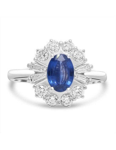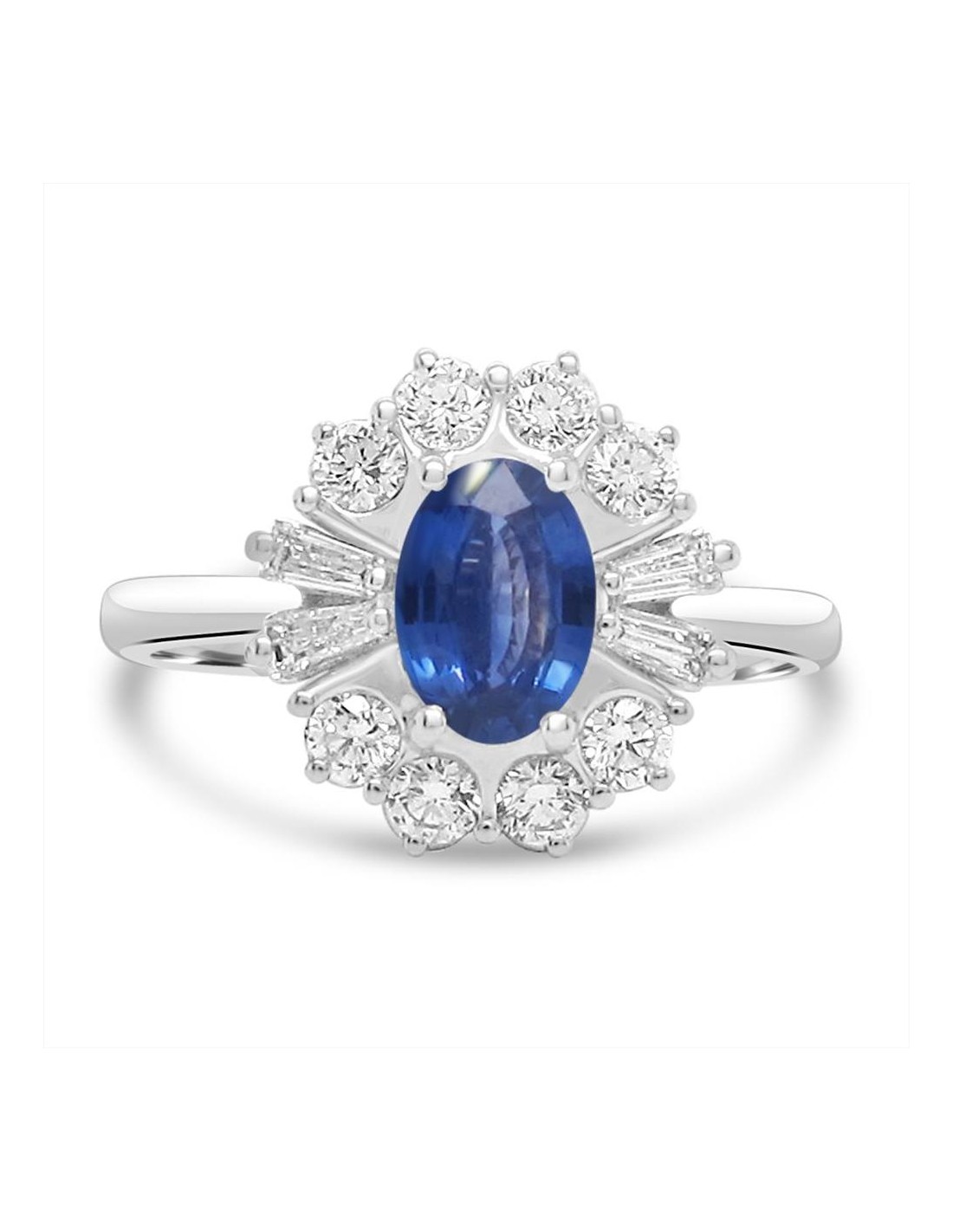 Anello Recarlo Anniversary Gems, in oro bianco 18KT, con zaffiro (Ceylon) ct.0,84 e contorno di diamanti ct. 0,52 ,colore F ,pururezza VS, taglio brillante e taper, peso oro gr. 4,12. Misura 14