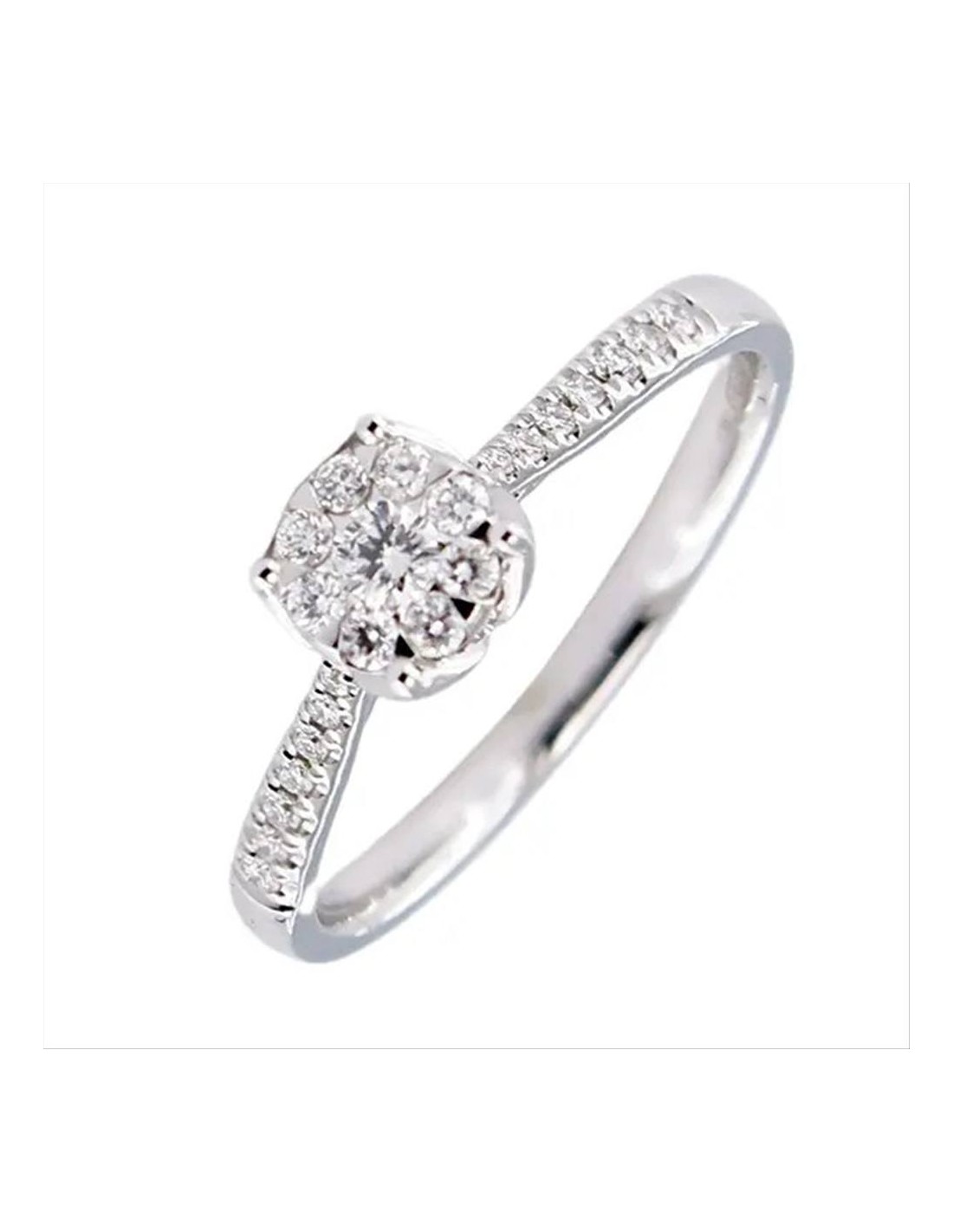 Anello Giorgio Visconti, in oro bianco 18KT con diamante centrale ct.0,17 incastonati a fiore e sul gambo ct.0,07, colore F ,purezza VS. Peso oro gr.2,80. Misura 14,5.