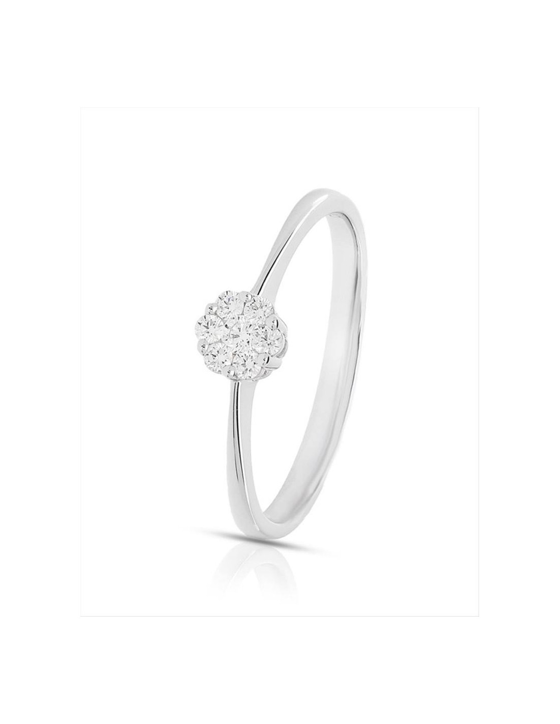 Anello Giorgio Visconti della collezione Antologie, modello solitario con pavè di diamanti a contorno. In oro bianco 18KT con diamanti ct.0,17, colore G ,purezza VS, taglio brillante. Peso oro gr.2,10. Misura 12,5.