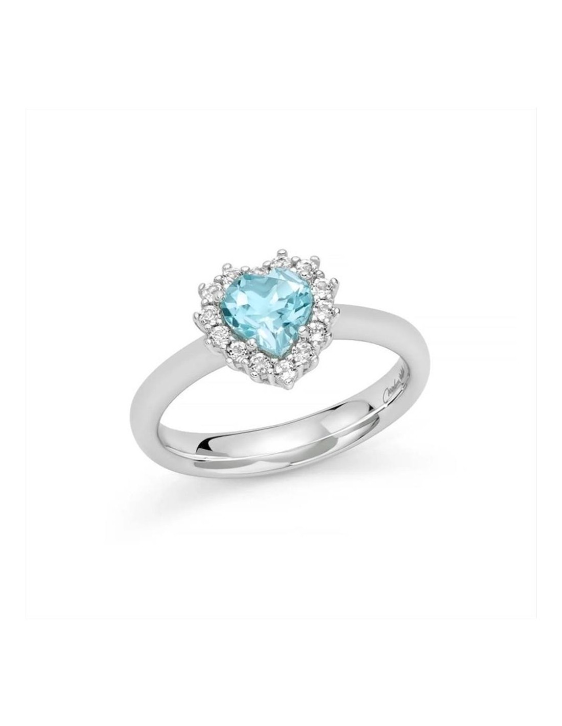 Anello Miluna "Gemma del Cielo 925", in argento 925 con topazio naturale azzurro taglio a cuore 6x6 mm di ct 0,94 e 14 topazi naturali bianchi taglio rotondo ct.0,28.