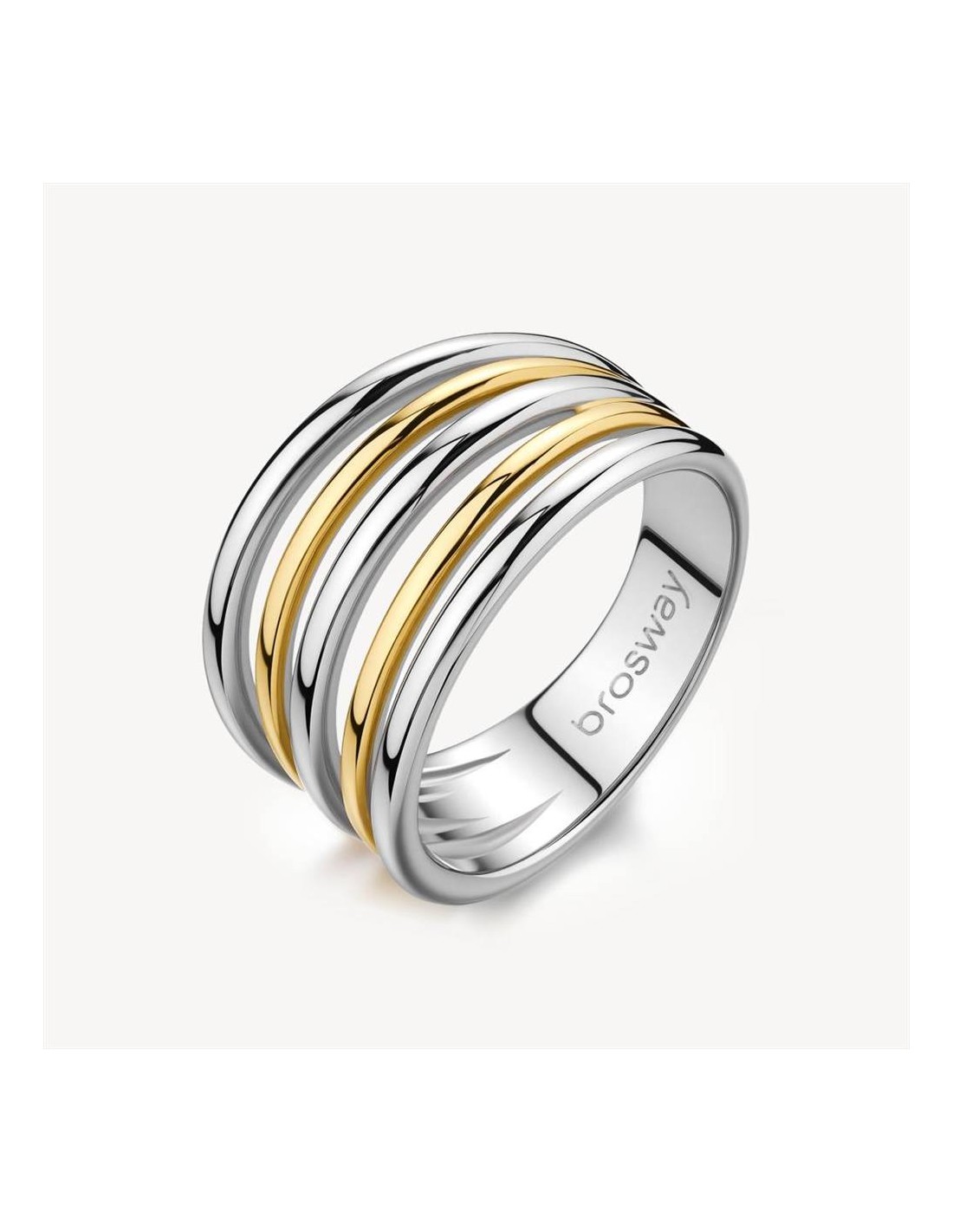Anello Brosway Aura, a fascia in acciaio 316L bicolore e finitura pvd oro 14K. Misura 14