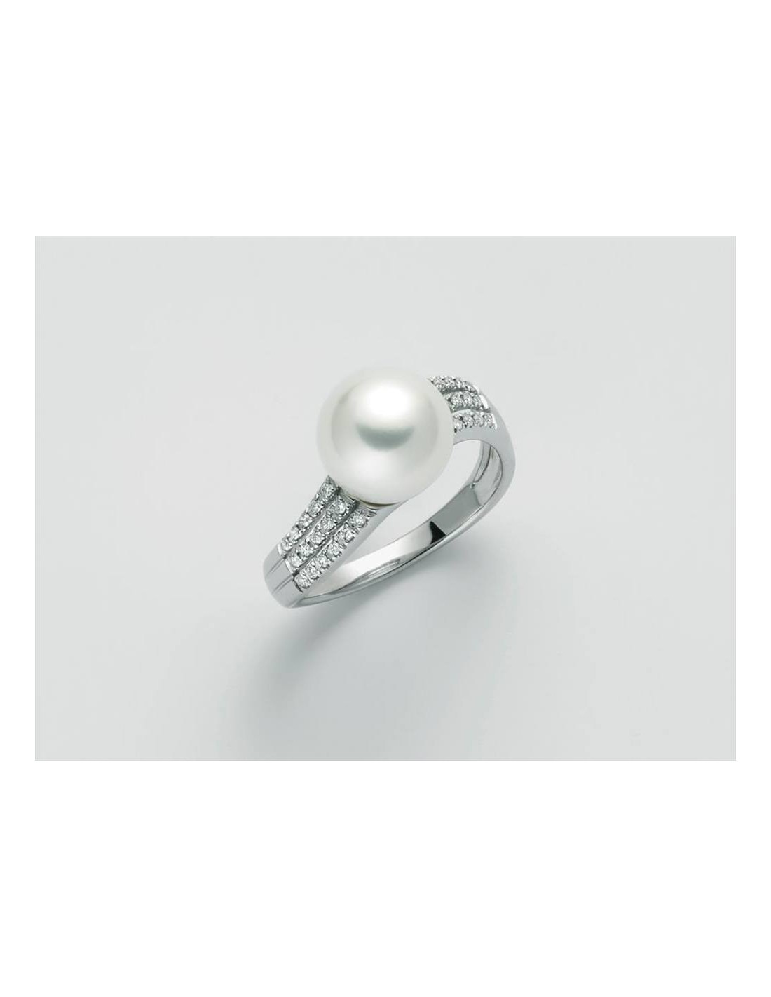Anello Nimei Parure Perle South Sea, in oro bianco 750/1000 ,nr.32 diamanti naturali Pt.tot 12,8 ,col.G ,pur.SI ,taglio brillante rotondo ,nr.1 perle australia Maxima col. bianco 9,5-10