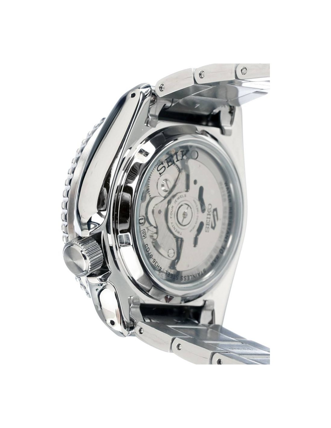 Orologio Seiko 5 Sports, solo tempo uomo. Cassa in acciaio da 42 mm, quadrante blu con indici e lancette luminescenti, datario alle ore 3, ghiera girevole unidirezionale di colore blu, vetro minerale, movimento automatico con capacità di carica manuale e riserva di carica di circa 41 ore,visibile attraverso il fondello. Cinturino in acciaio silver. Impermeabilità di 10 atm.