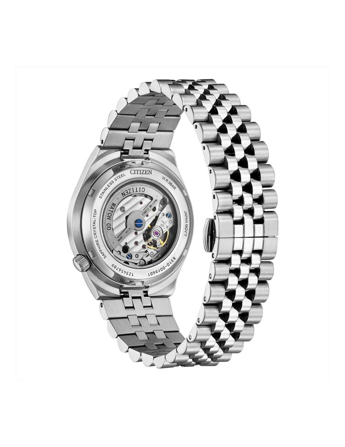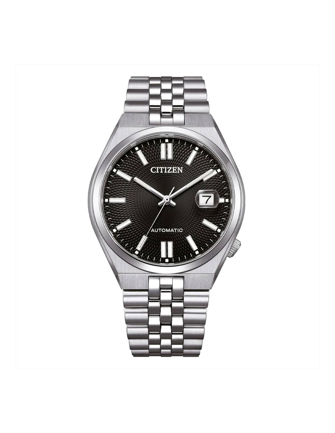 Orologio Citizen Tsuyosa 60solo tempo uomo. Cassa in acciaio silver con finitura satinata da 40 mm, quadrante nero con indici e lancette luminescenti, datario alle ore 3. Vetro zaffiro con lente sul quadrante. Movimento automatico visibile attraverso il fondello con riserva di carica di 40 ore. Vetro minerale, e cinturino in acciaio. Impermeabilità di 5 atm.