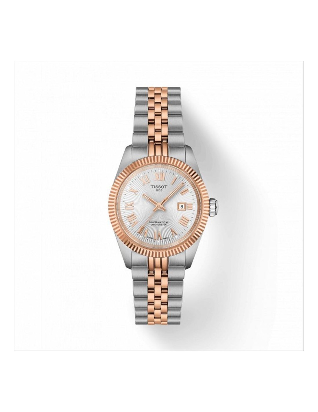 Orologio Tissot Ballade Powermatic 48 Chronometer COSC, evoluzione di un modello con radici profonde nella collezione Tissot, reintrodotto nel 2024 e ora arricchito da prestazioni certificate cronometriche. Cassa in acciaio inossidabile 316L da 34 mm, quadrante silver con numeri romani rosè e lancette luminescenti. Datario a ore 3. Movimento automatico powermatic 48 con spirale Nivracon in silicio, che garantisce fino a 48 ore di riserva di carica, maggiore precisione e resistenza ai campi magnetici. Il fondello a vista permette di ammirare i dettagli della meccanica. Ghiera zigrinata in acciaio rosè. Vetro zaffiro antigraffio con trattamento antiriflesso su entrambi i lati. Cinturino in acciaio bicolore silver e rosè maglia effetto jubileè con chiusura a farfalla con pulsanti. Impermeabilità di 10 atm.