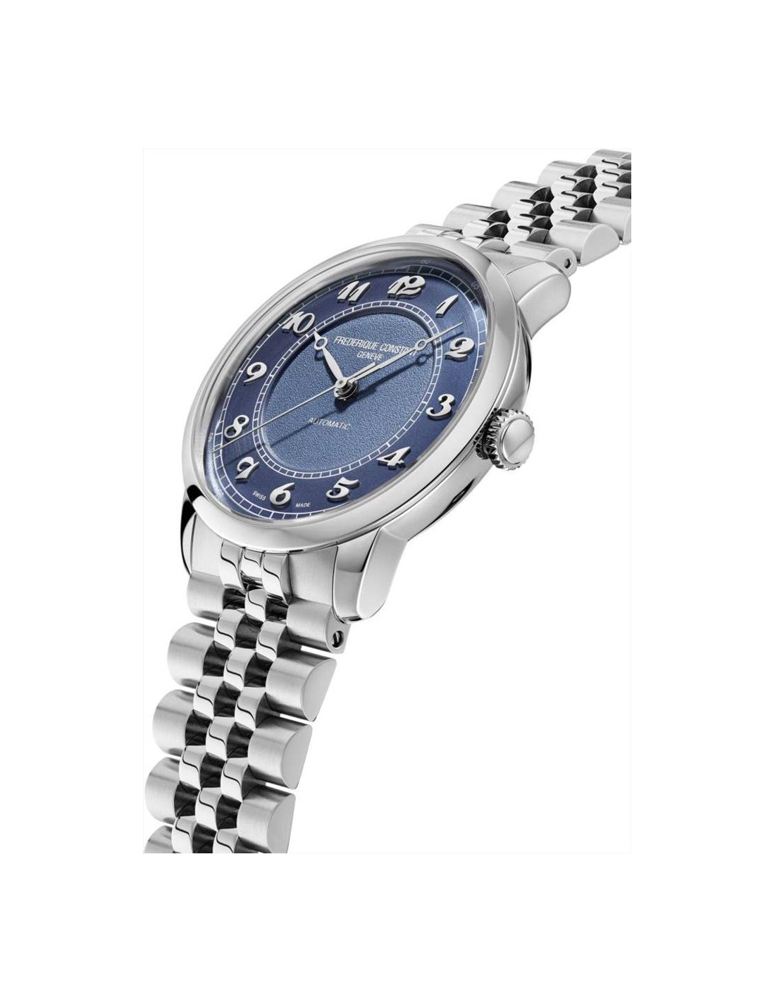 Orologio Frederique Constant Classics Premiere, solo tempo uomo, pensato per chi ama un orologio dallo stile sobrio ma distintivo, perfetto per ogni occasione. Cassa in acciaio inossidabile da 38,5 mm offre proporzioni equilibrate al polso, ideali sia per outfit formali sia per un look quotidiano elegante. All’interno pulsa il movimento automatico Swiss Made FC-301, con riserva di carica di circa 68 ore e 24 rubini, che garantisce precisione affidabile e prestazioni costanti nel tempo. Quadrante blu con numeri arabi e lancette silver. Vetro zaffiro convesso. Cinturino in acciaio e impermeabilità di 5 atm.