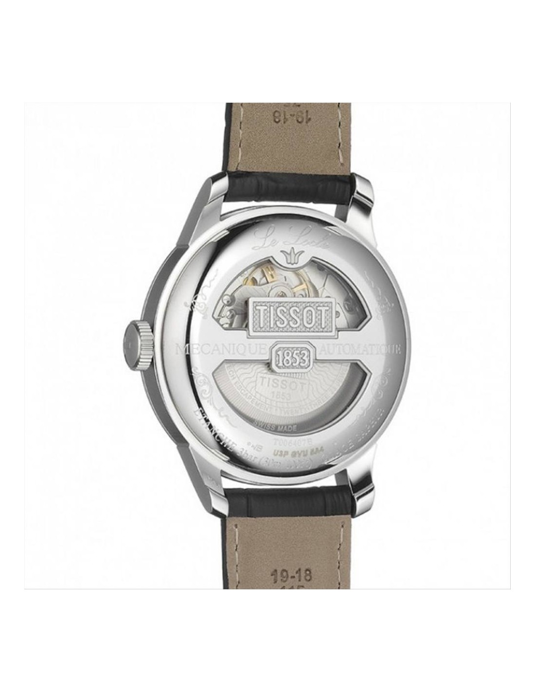 Orologio Tissot Le Locle Powermatic 80, solo tempo. Cassa in acciaio 39 mm, quadrante nero con numeri romani, vetro zaffiro con trattamento antigraffio e antiriflesso. Movimento automatico svizzero Powermatic 80 che permette 80 ore di riserva di carica, visibile attraverso il fondello. Cinturino in pelle nero, chiusura a farfalla con pulsanti. Datario alle ore 3 e impermeabilità di 3 atm.