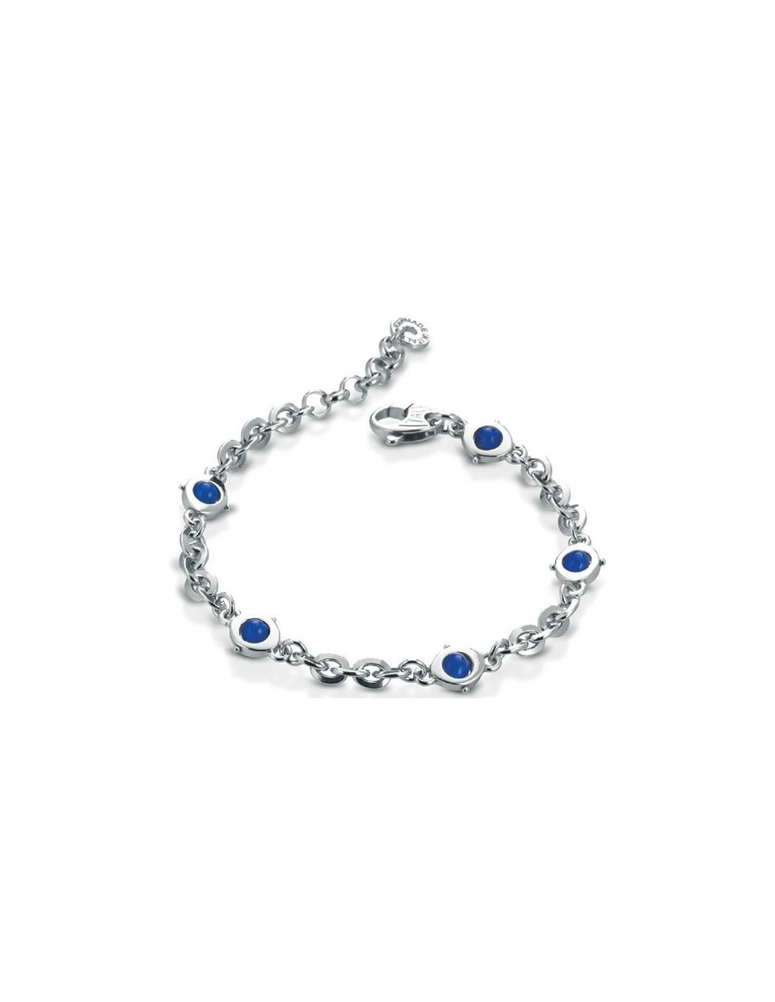 Bracciale Ananda925, in argento 925/1000 rodiato oro bianco con pietre blu. Lunghezza bracciale regolabile da cm19 a cm 21