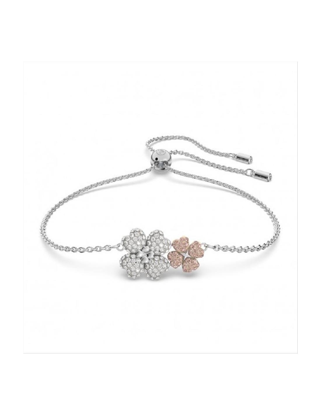 Bracciale Swarovski Latisha. Aggiungi ai tuoi gioielli questo bracciale senza tempo e al contempo splendidamente femminile. Questo delicato design, caratterizzato da motivi floreali impreziositi da cristalli incastonati con la tecnica Pointiage di Swarovski, è rifinito con una placcatura in rodio. Misura M. Lunghezza massima: 24 cm