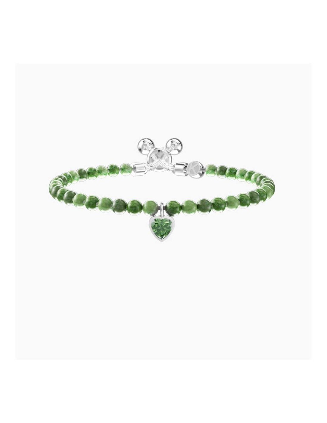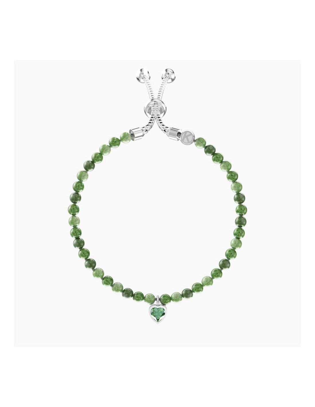 Bracciale Kidult Energy Stone, modello regolabile, in acciaio con catena veneta, diaspro imperiale verde striato e cristallo verde taglio cuore. Dimensione del cuore: 5 x 5. Diametro delle sfere: 4 mm. Misura regolabile, lunghezza da 16 a 25 cm. Energia/ Sogni: "Credi nella bellezza dei tuoi sogni. Ti darà l'energia per raggiungere i tuoi obiettivi."