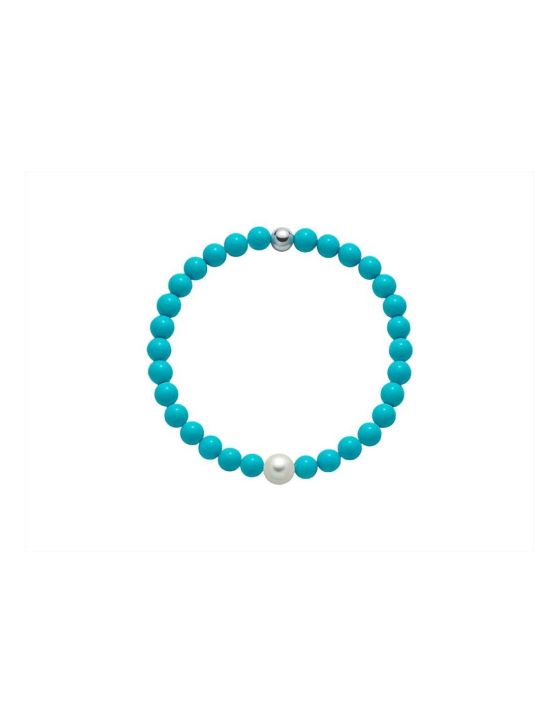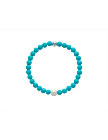 Bracciale Miluna Terra e Mare, in argento 925/1000 ,nr.1 Perle MR Col. Bianco 7,5-8 ,fl.0,46 agglomerato col. turchese mm 6