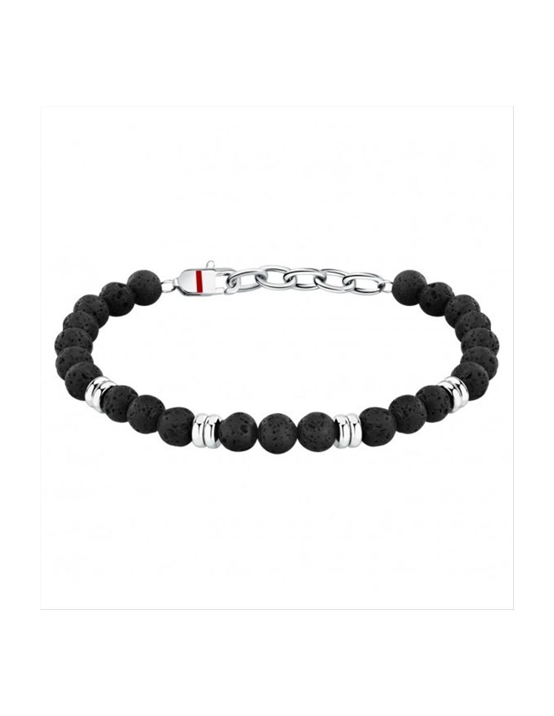 Bracciale Sector Basic, da uomo realizzato in acciaio anallergico con finitura lucida e sfere in pietra lavica. Lunghezza totale di 22 cm, regolabile fino a 19 cm. Chiusura a moschettone.