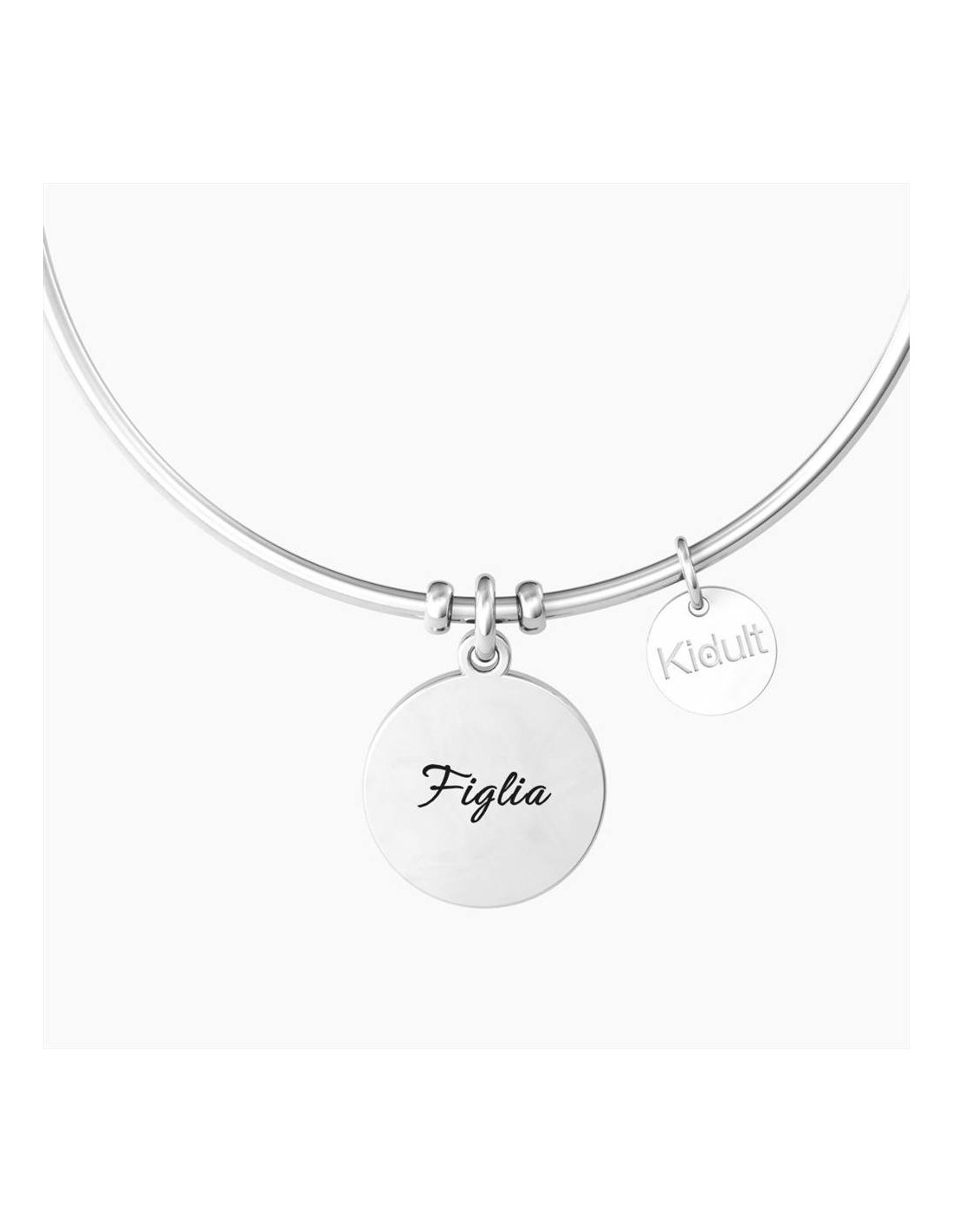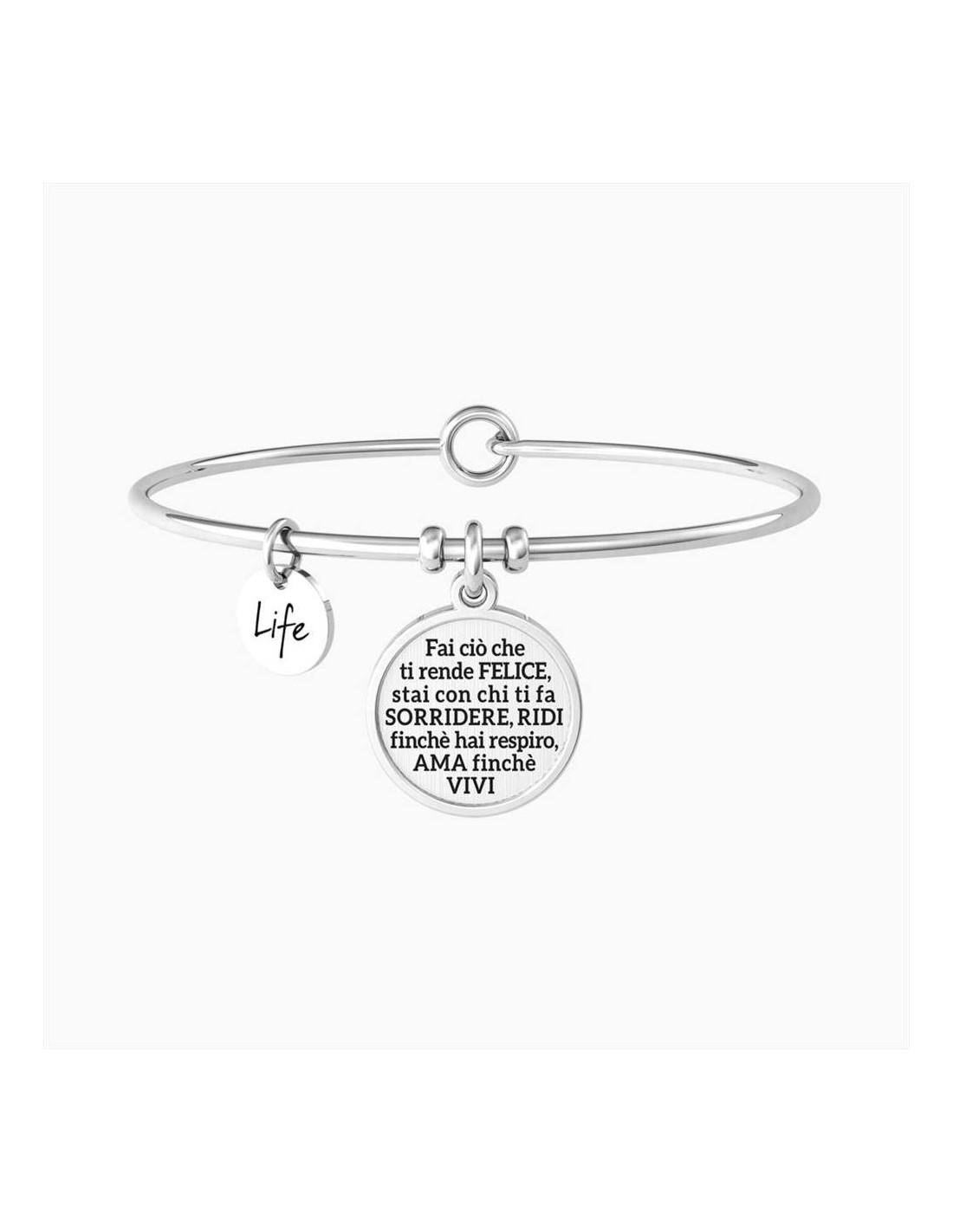 Bracciale Kidult Family, Figlia in acciaio con ciondolo tondo lucido e satinato con frase "Fai ciò che ti rende felice, stai con chi ti fa sorridere, ridi finché hai respiro, ama finché vivi".