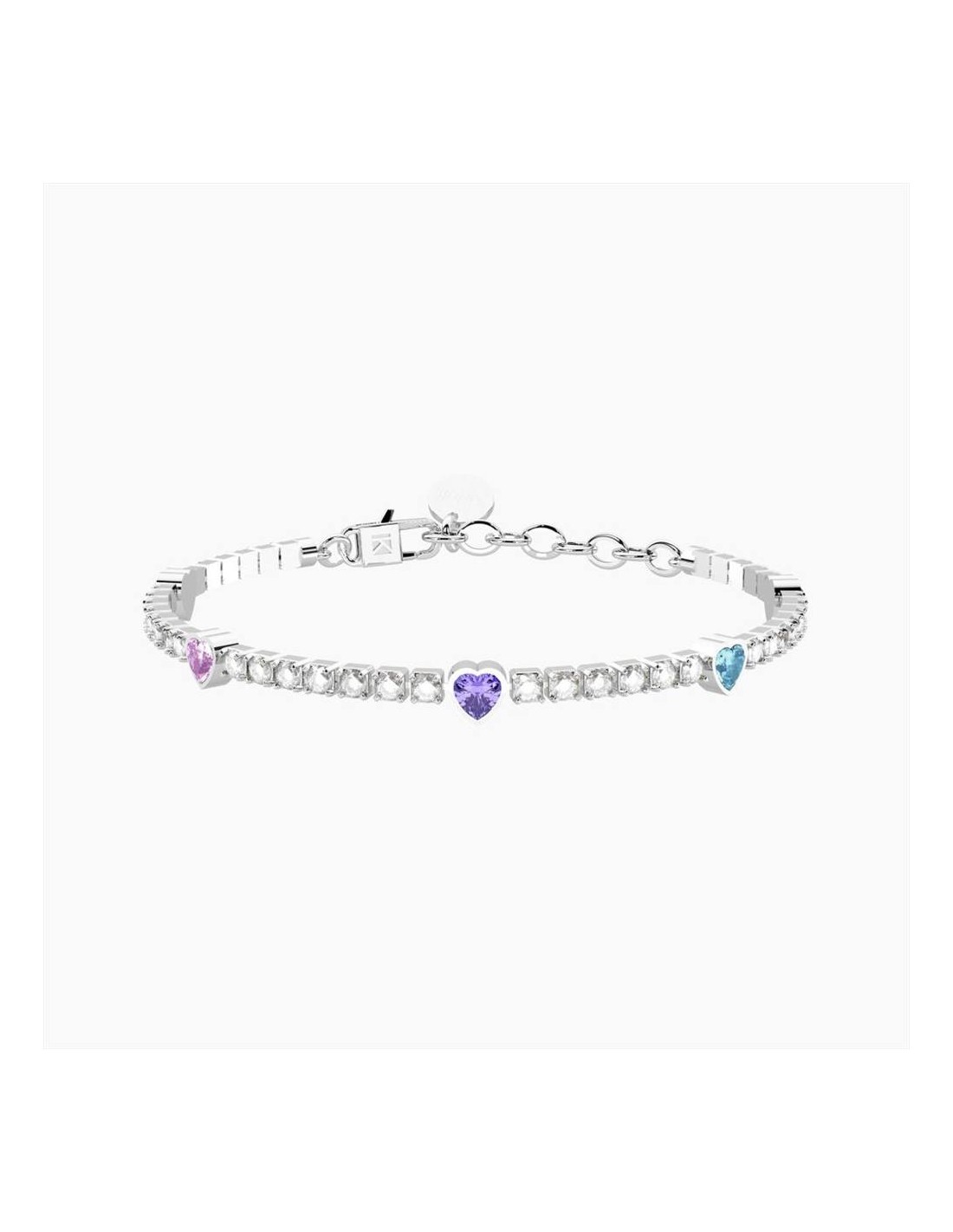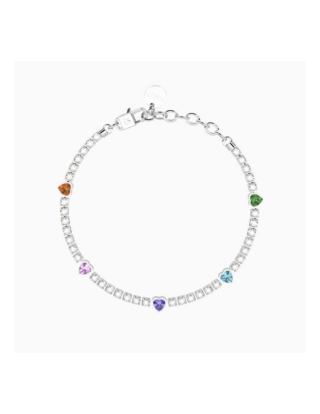 Bracciale Kidult Energy Stone, regolabile in acciaio con tennis di cristalli e inserti cuore multicolor in zirconi.
