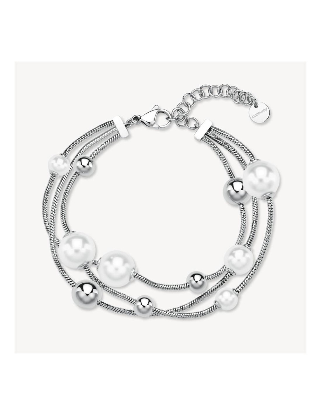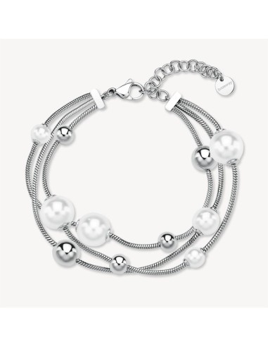 Bracciale Brosway Perfect, multifilo in acciaio 316L con sfere e perle di conchiglia.
