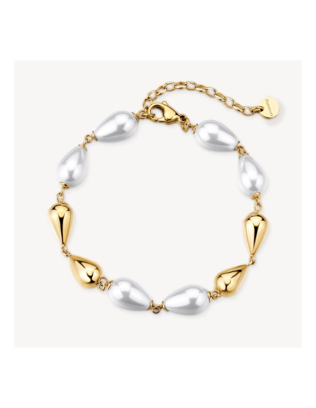 Bracciale Brosway Perfect, in acciaio 316L e finitura pvd oro 14K, con perle di conchiglia.