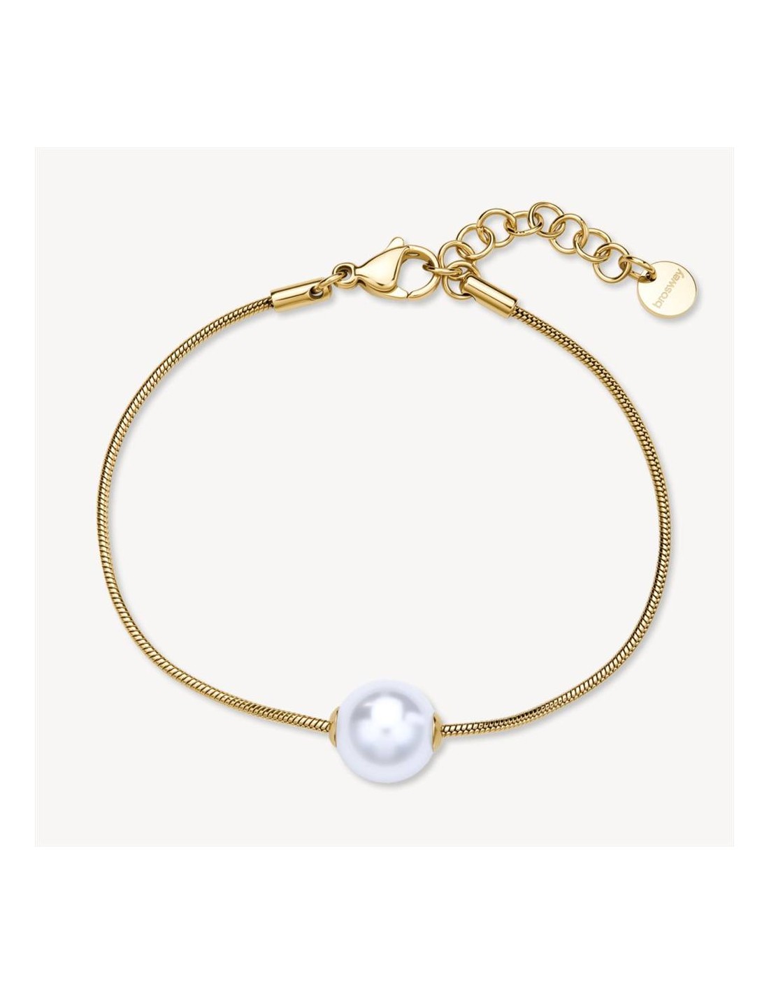 Bracciale Brosway Perfect, in acciaio 316L e finitura pvd oro 14K con perla di conchiglia centrale.