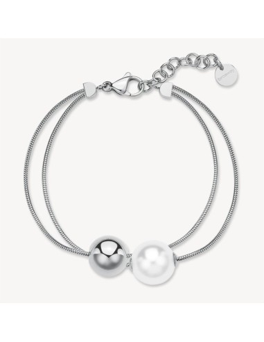 Bracciale Brosway Perfect, multifilo in acciaio 316L con centrale a sfera e perla di conchiglia.