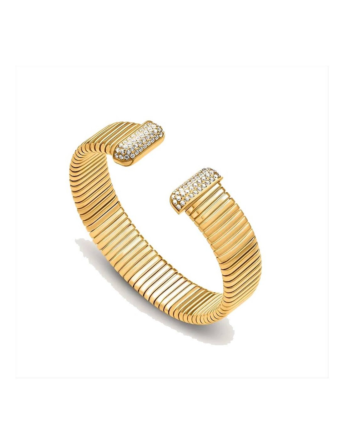Bracciale Stroili Lady Code, modello rigido, in acciaio dorato con strass. Lunghezza 16.5+3 cm.