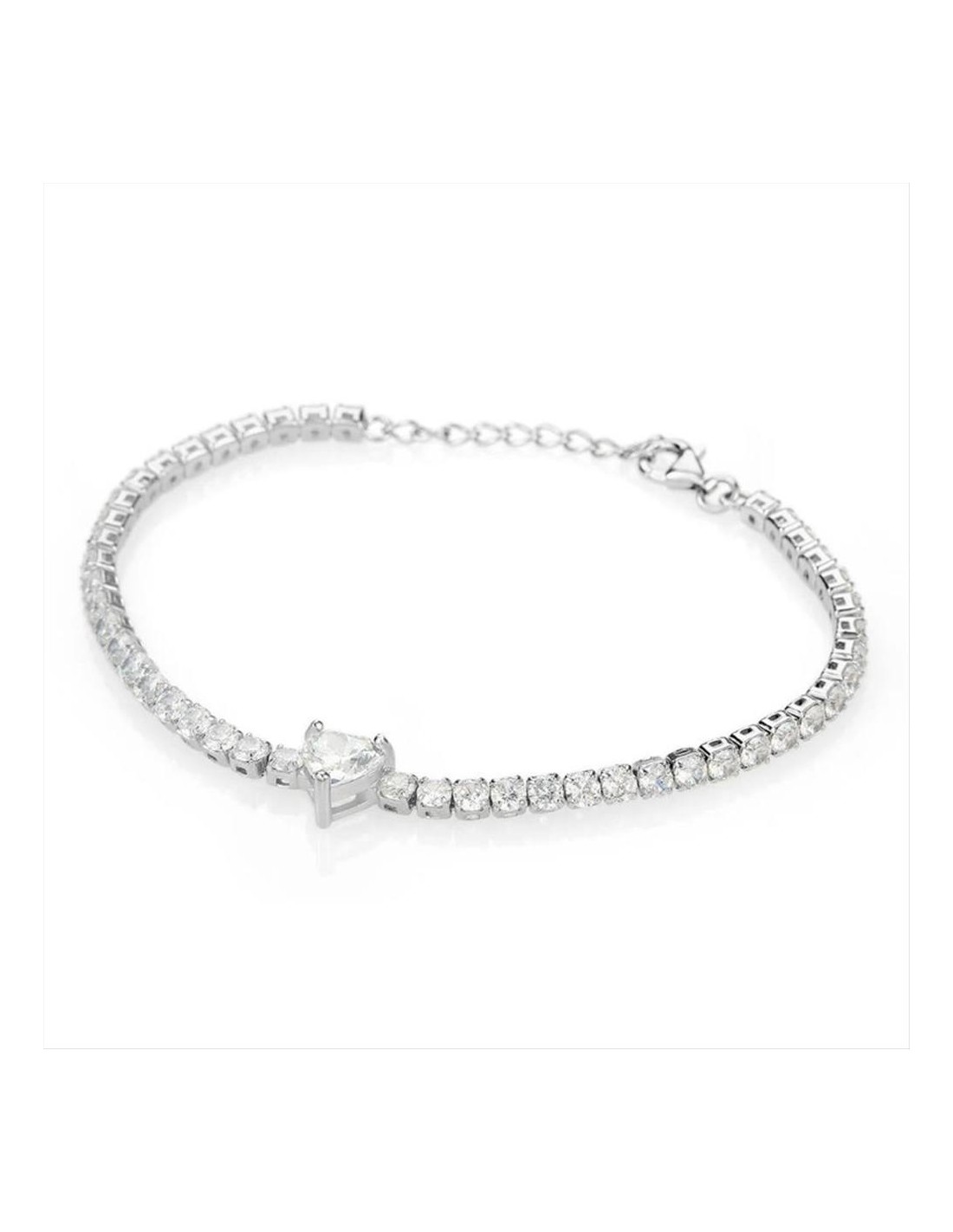 Bracciale Stroili Silver Elegance, in argento 925 con zirconi colore bianchi e cristallo centrale a forma di cuore. Lunghezza 16 +3 cm.