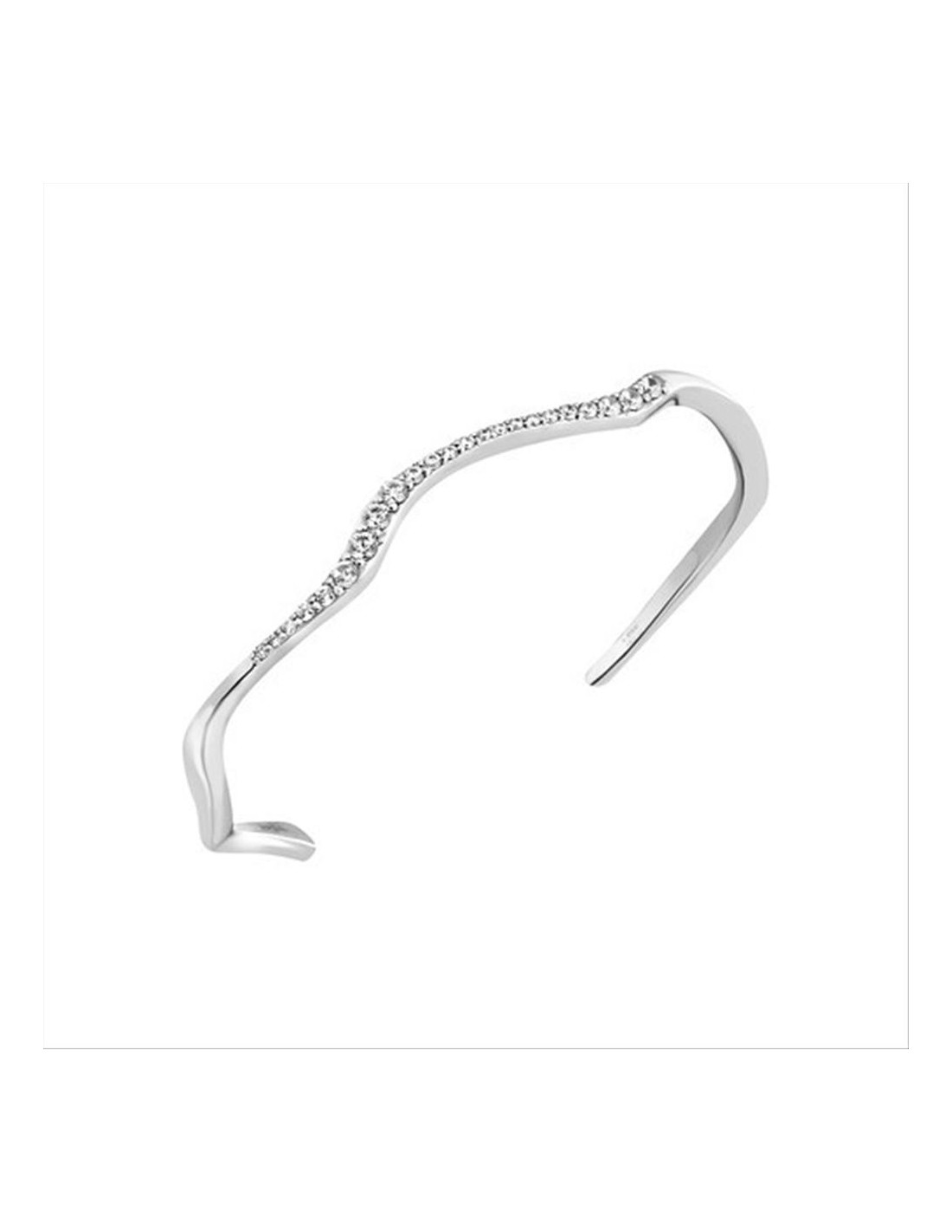 Bracciale Breil Zig Zag, modello rigido, in acciaio lucido silver ed è caratterizzato da un design fluido e sinuoso che avvolge il polso con eleganza. Impreziosito da un pavé di zirconi bianchi.