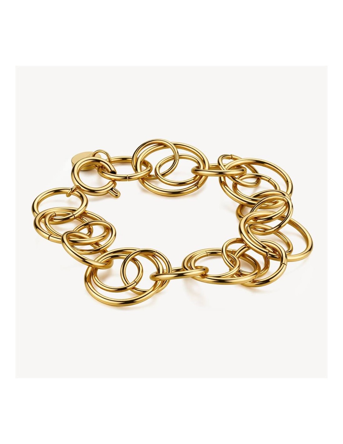 Bracciale Brosway Aura, in acciaio 316L e finitura pvd oro 14K, con cerchi intersecati.