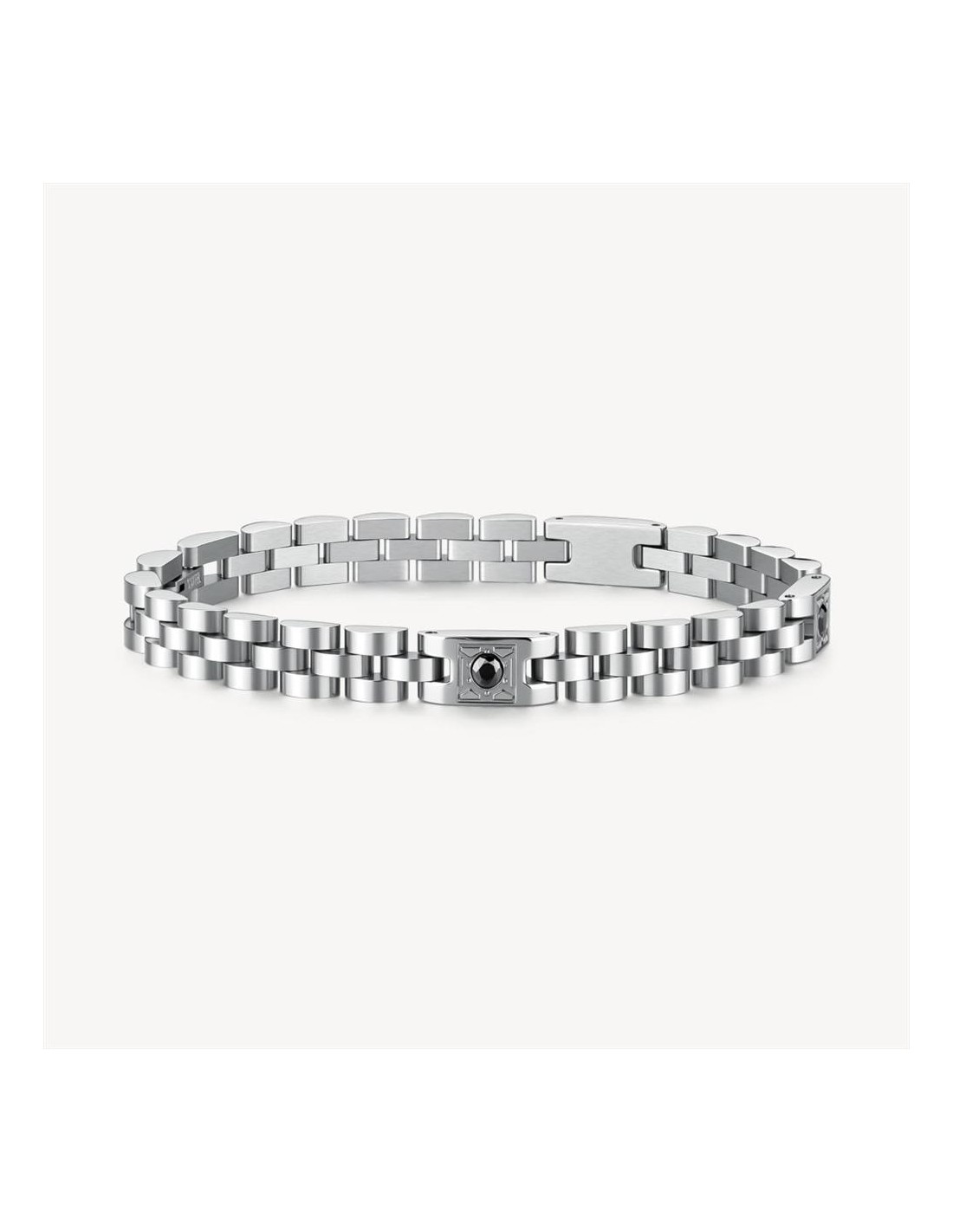 Bracciale Brosway Riptide, da uomo, in acciaio 316L con zirconi neri. Lunghezza 20 cm