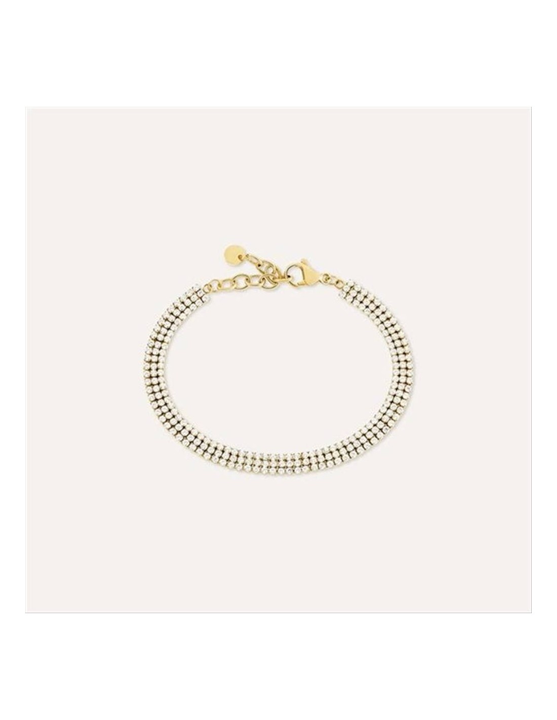 Bracciale Stroili Aura, a tre fili, in acciaio dorato e ziconi.Lunghezza 16+ 3 cm.