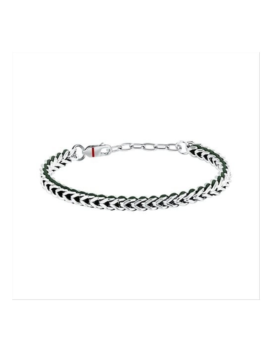 Bracciale Sector Bandy, in acciaio con nylon verde intrecciato. Lunghezza regolabile 19+ 3 cm. Chiusura a moschettone.