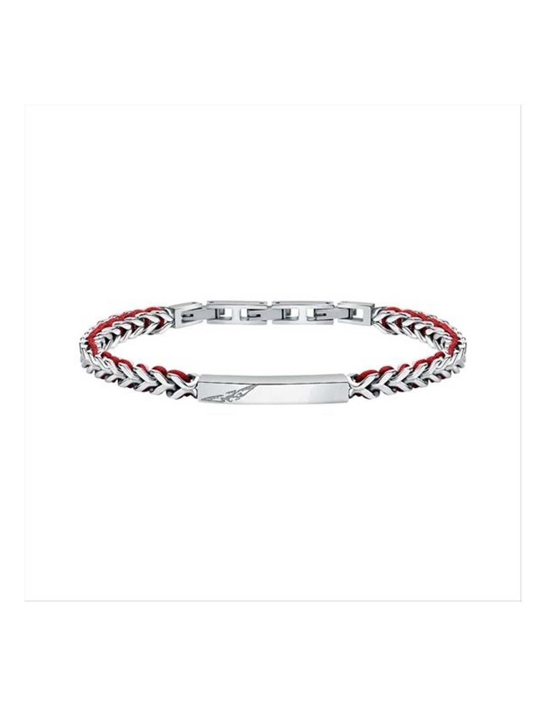 Bracciale Sector Bandy, in acciaio con nylon rosso intrecciato e placchetta centrale. Lunghezza regolabile 19+ 3 cm.