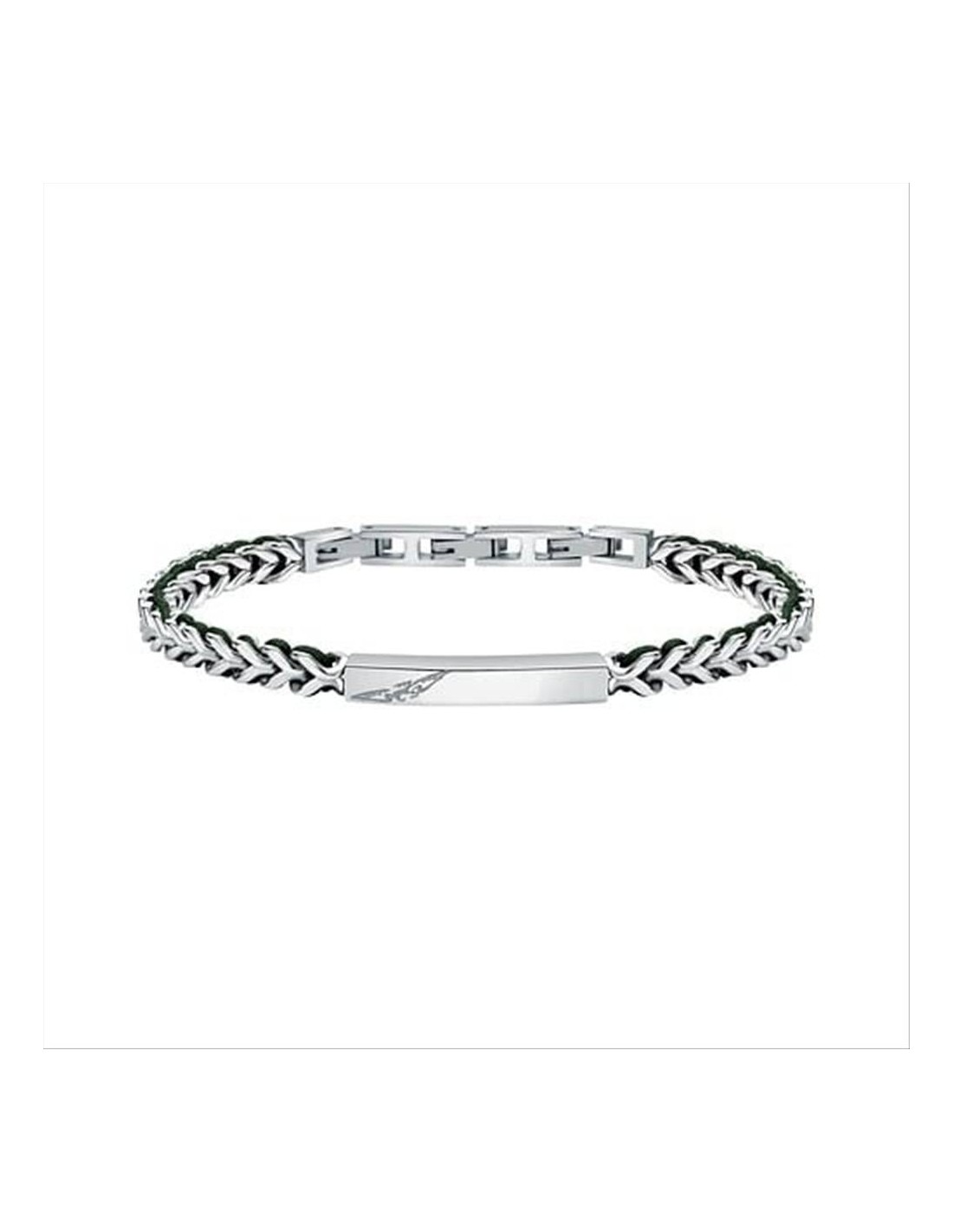 Bracciale Sector Bandy, in acciaio con nylon verde intrecciato e placchetta centrale. Lunghezza regolabile 19+ 3 cm.
