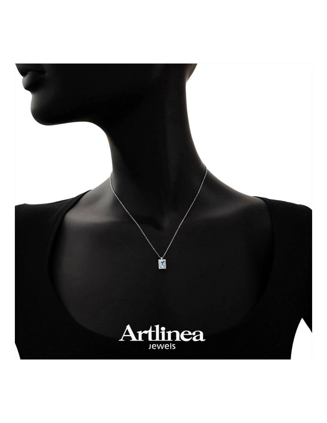 Collana Artlinea Diamond, in oro bianco 18 kt, con acquamarina e diamanti. Nr. 28 diamanti bianchi naturali ct. 0,08 ,col.G ,pur.VS. Nr. 1 acquamarina ct.0,83. Peso oro gr.2,90. Lunghezza 42 cm.
