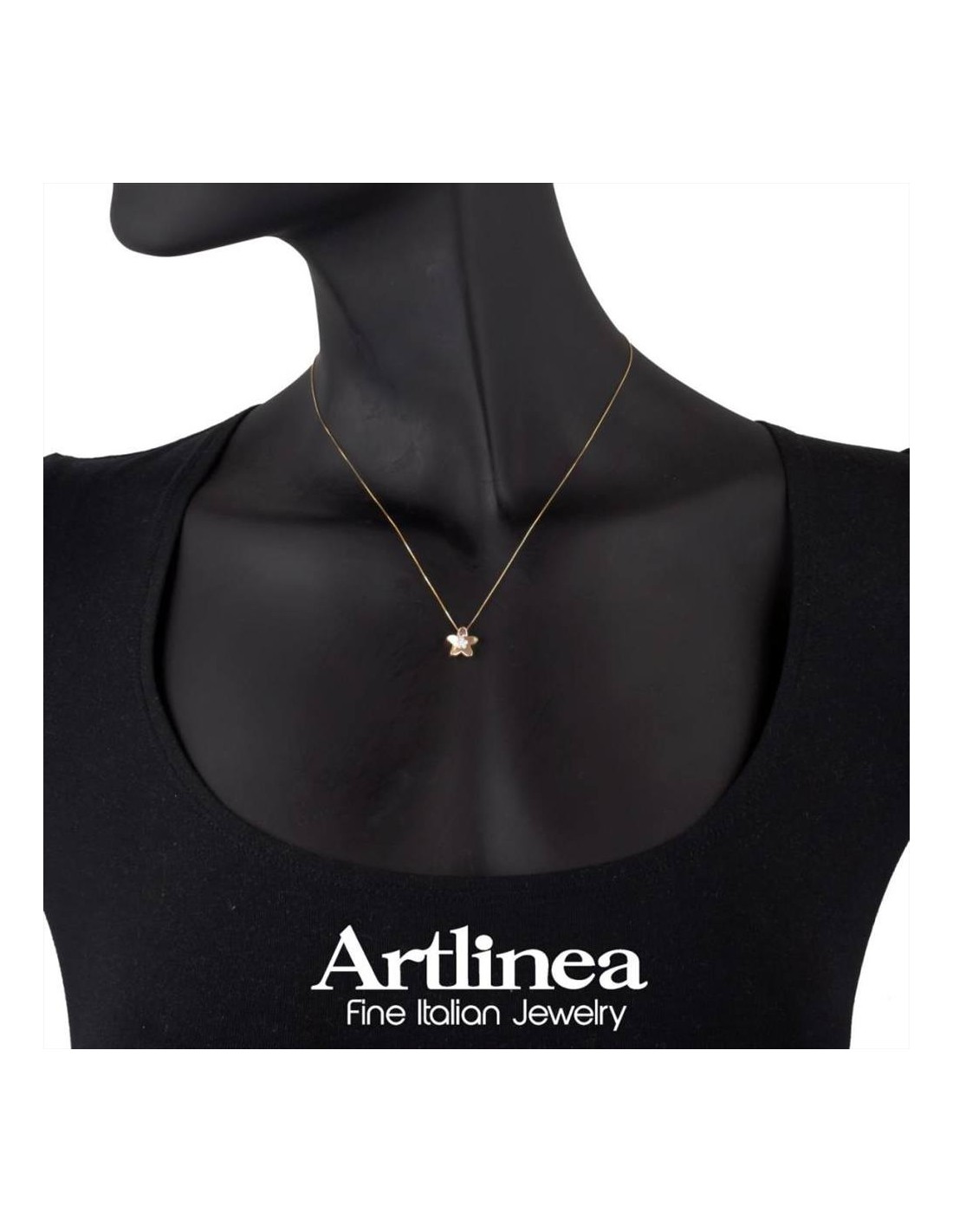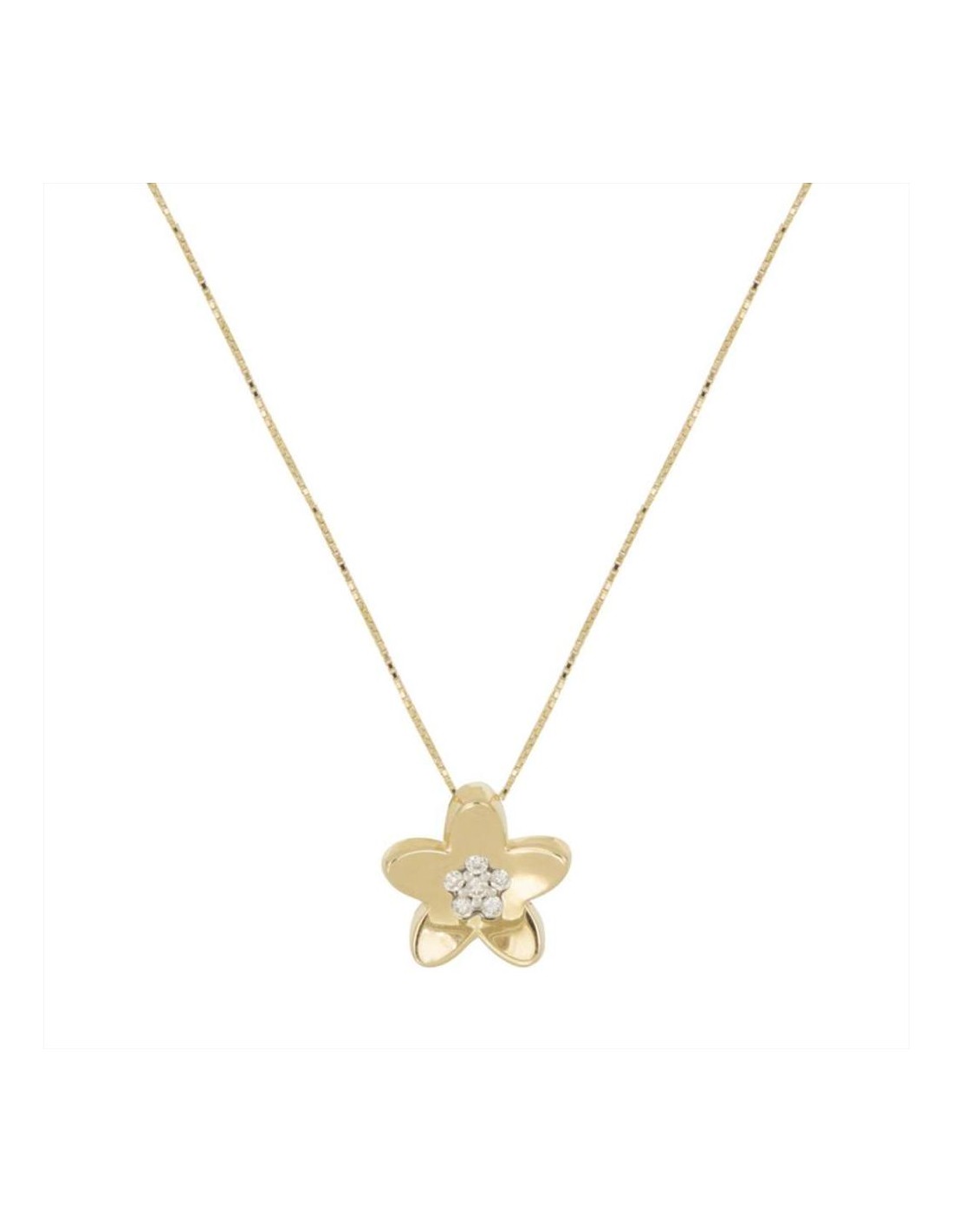 Collana Artlinea Diamond Joy, in oro giallo 18kt con pendente a forma di fiore in pavé di diamanti. Nr. 6 diamanti bianchi naturali ct.0,05 ,col.G ,pur.VS. Peso oro gr. 1,70. Lunghezza 42 cm.
