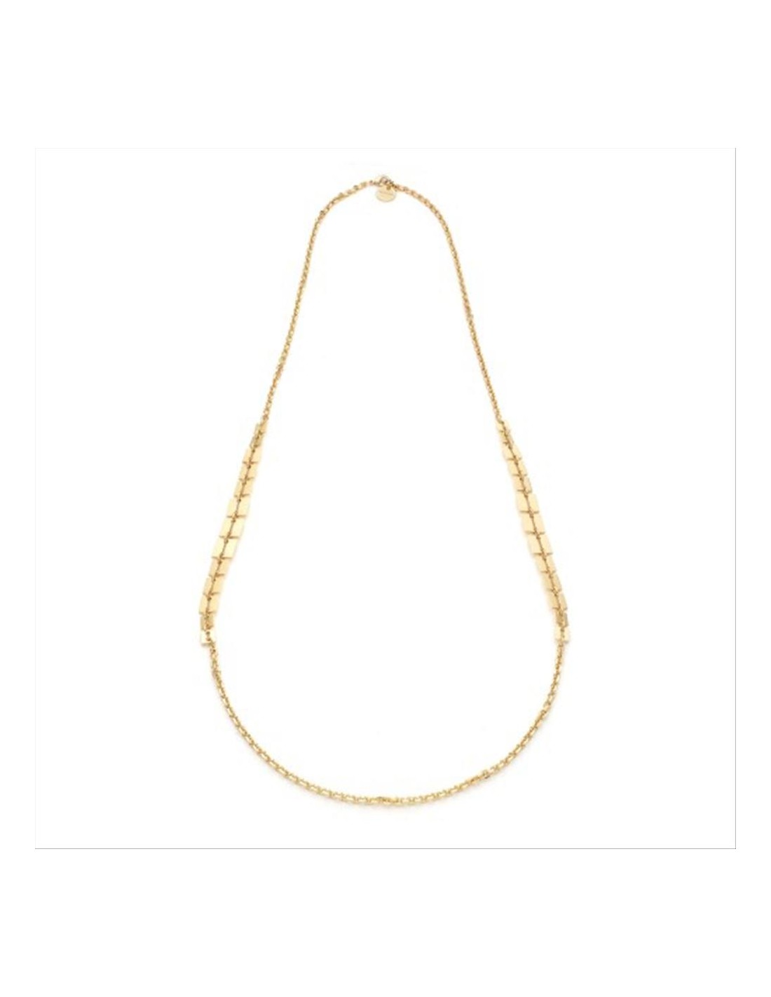 Collana Unoaerre Lux, in bronzo dorato, modello lungo con maglie piatte quadrate concatenate alternate a catena in piccole maglie ovali. Chiusura a moschettone, misura 88,00 cm.