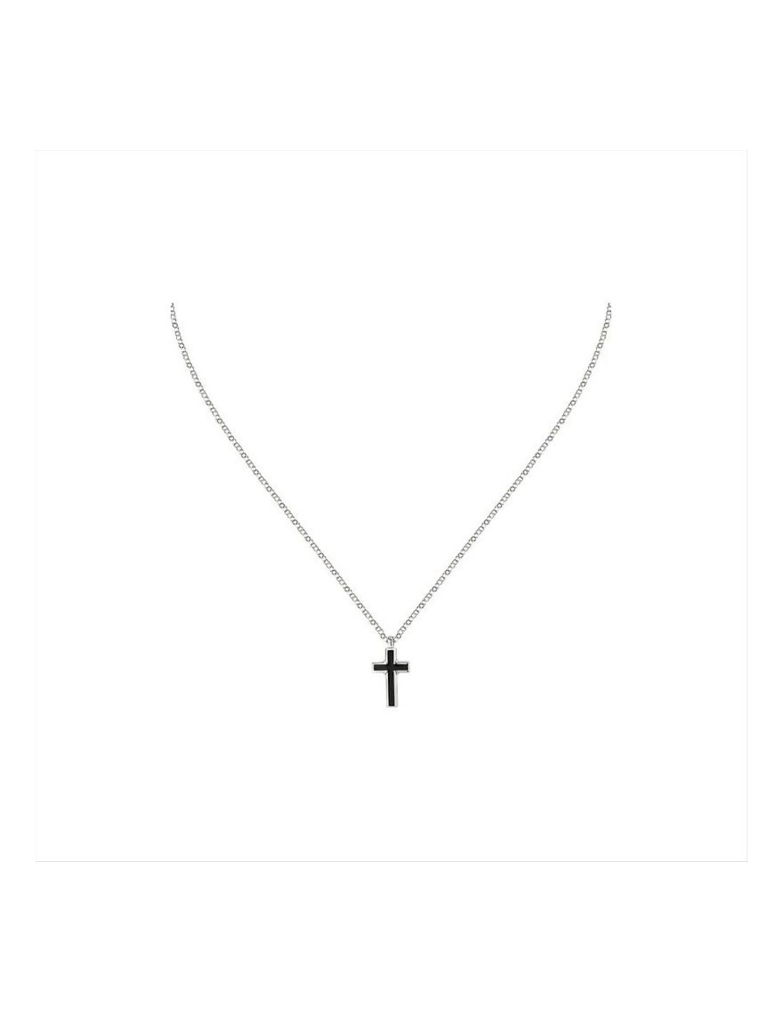 Collana Sector Spirit, in acciaio e smalto nero, pendente a forma di croce. Lunghezza: 50 + 5 cm.