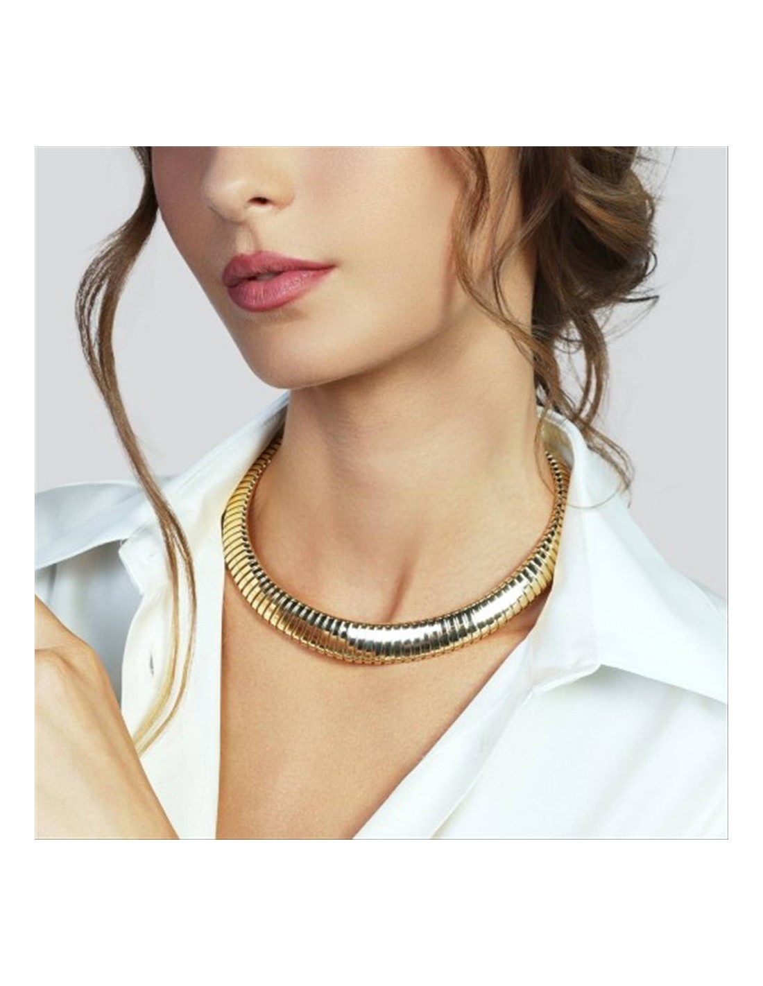 Collana Unoaerre, maxi catena dorata, maglia tubogas, in bronzo dorata. Chiusura a moschettone, misura 40,00 cm.