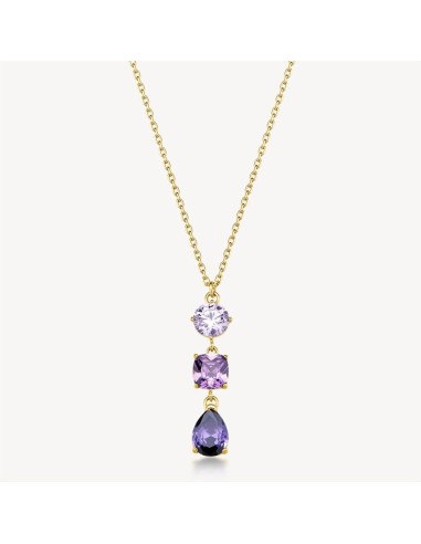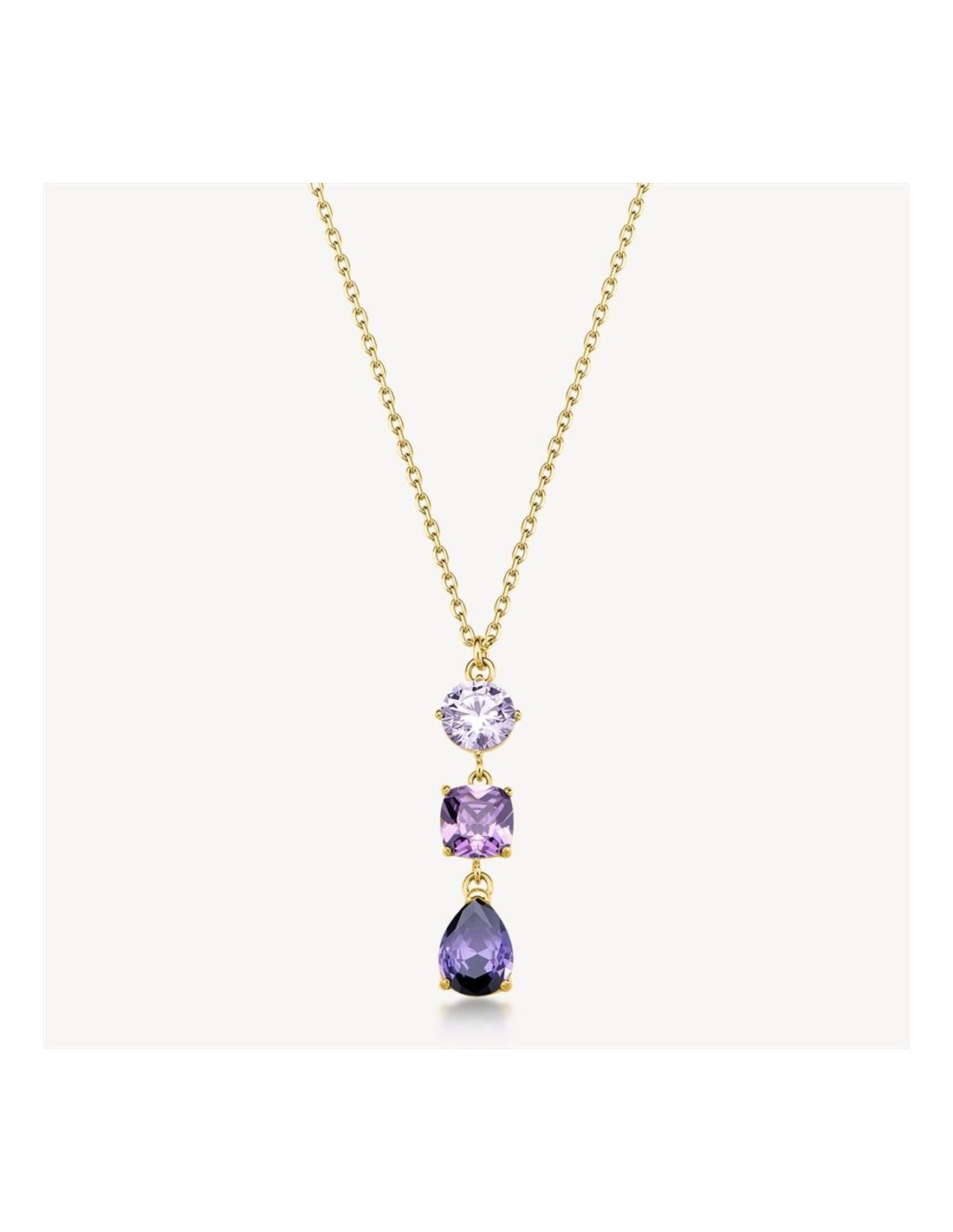 Collana Brosway Dreaming, girocollo in acciaio 316L e finitura pvd oro 14K, con pendente con round, cushion e pear cubic zirconia colore ametista.