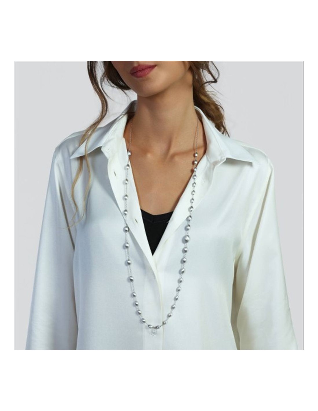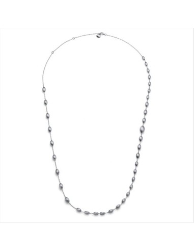 Collana Unoaerre, modello lungo, in argento, catena sottile e perle ovali in finitura satinata. Lunghezza 90 cm