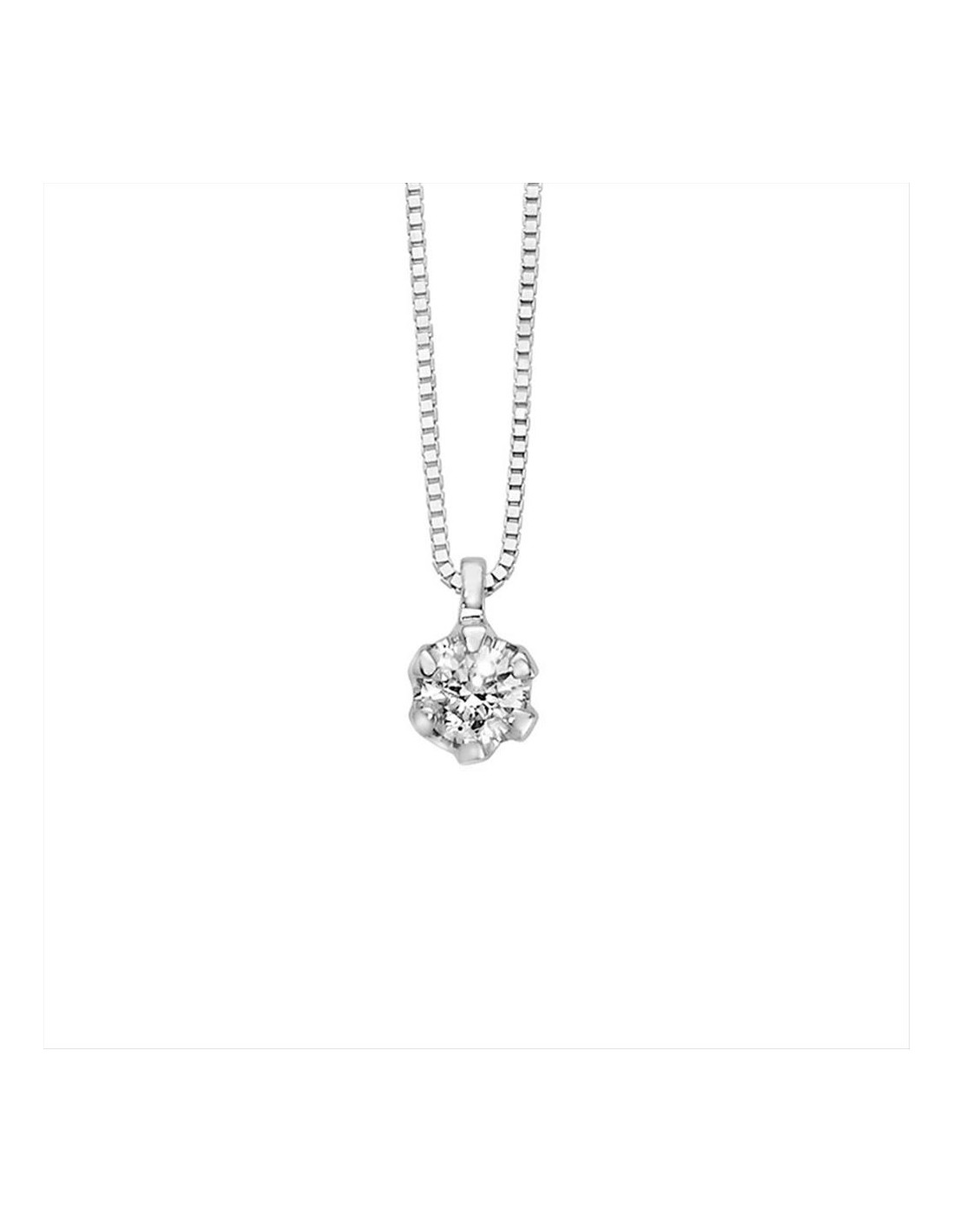 Collana Miluna Collier Punto Luce, in oro 750/1000 con nr 1 diamante naturale punti totali 5 - colore G e purezza SI. Taglio brillante rotondo. Catenina veneziana bianca. Microfusione griffes.