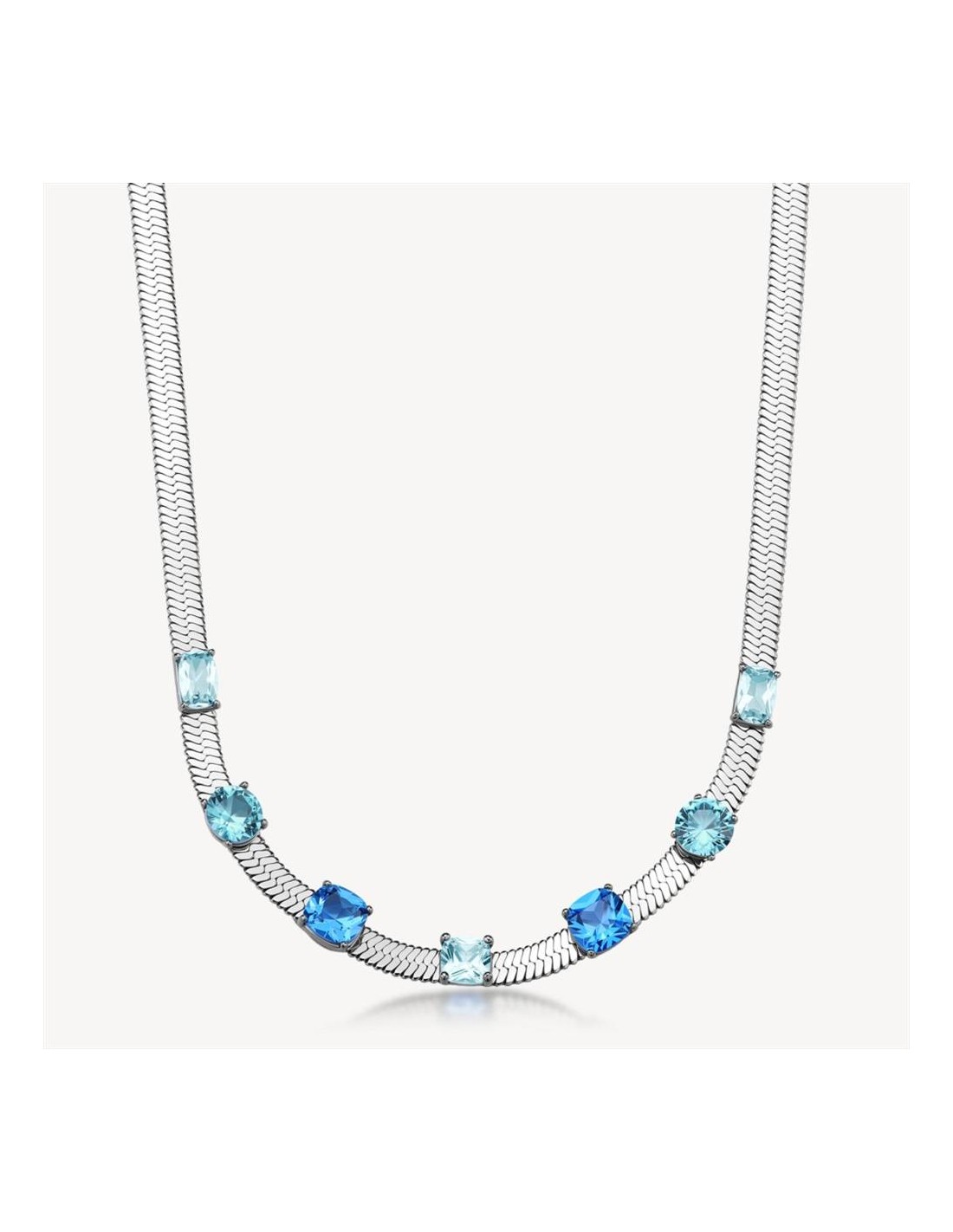 Collana Brosway Dreaming, in acciaio 316L, con round, cushion, square e baguette cubic zirconia colore light sapphire.