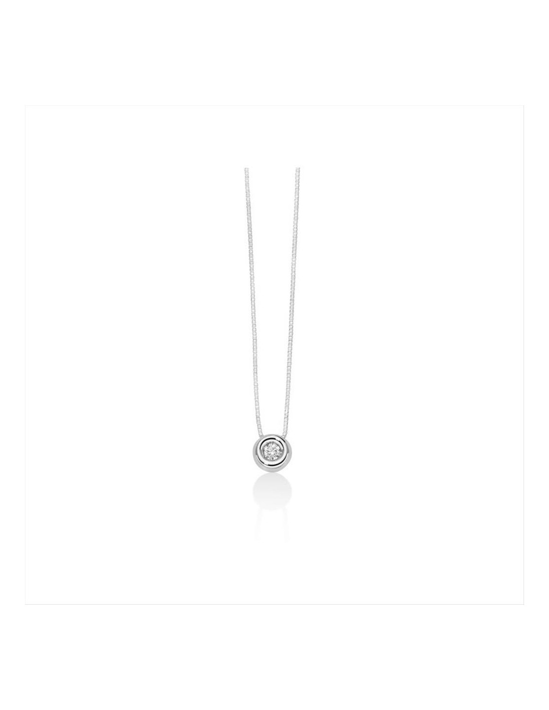 Collana Miluna Collier Punto Luce, in oro 750/1000 Nr. 1 Diamanti Pt.tot. 0,05 Col.G Selezionato, purezza SI, Taglio Brillante Rotondo. Catenina veneziana bianca.