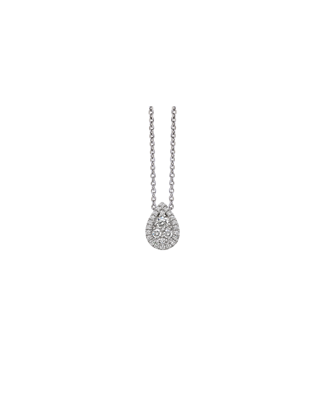 Collana Giorgio Visconti, in oro bianco 18KT e ciondolo a forma di goccia in diamanti ct.0,14, colore G, purezza VS, taglio brillante, peso oro gr. 3,20. Lnghezza regolabile.