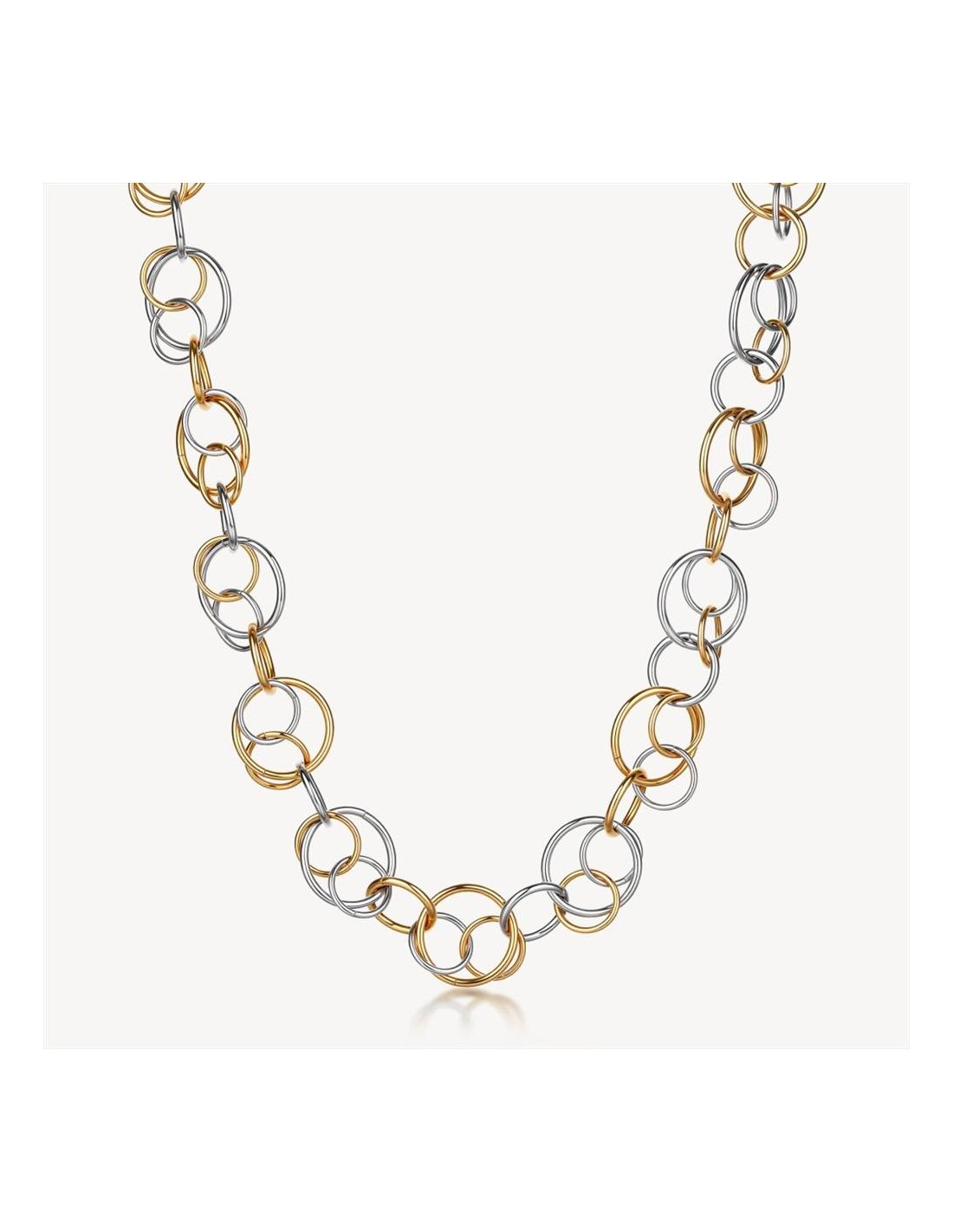 Collana Brosway Aura, in acciaio 316L e finitura pvd oro 14K, con cerchi intersecati. Lunghezza 45 cm.