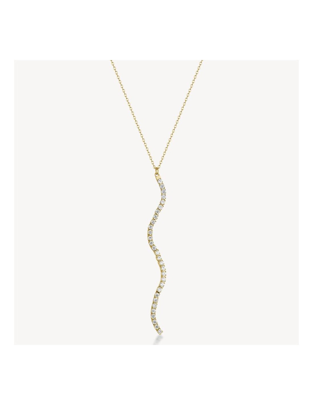 Collana Brosway Desideri, lunga in acciaio 316L e finitura pvd oro 14K, con pendente a S e cubic zirconia.