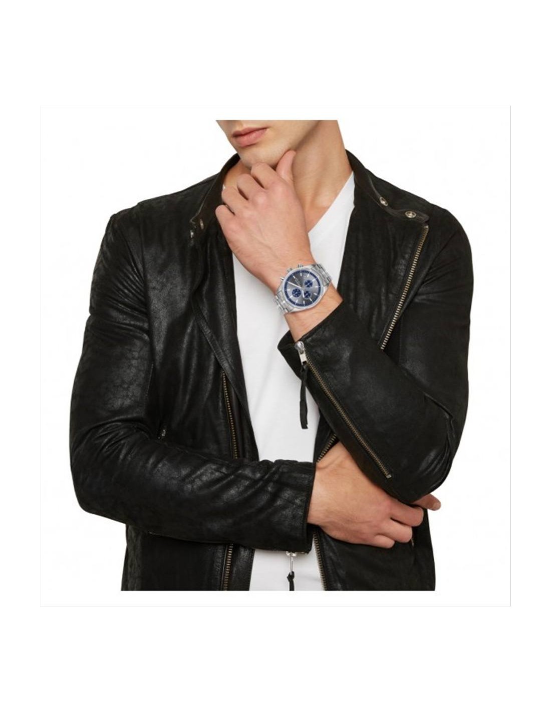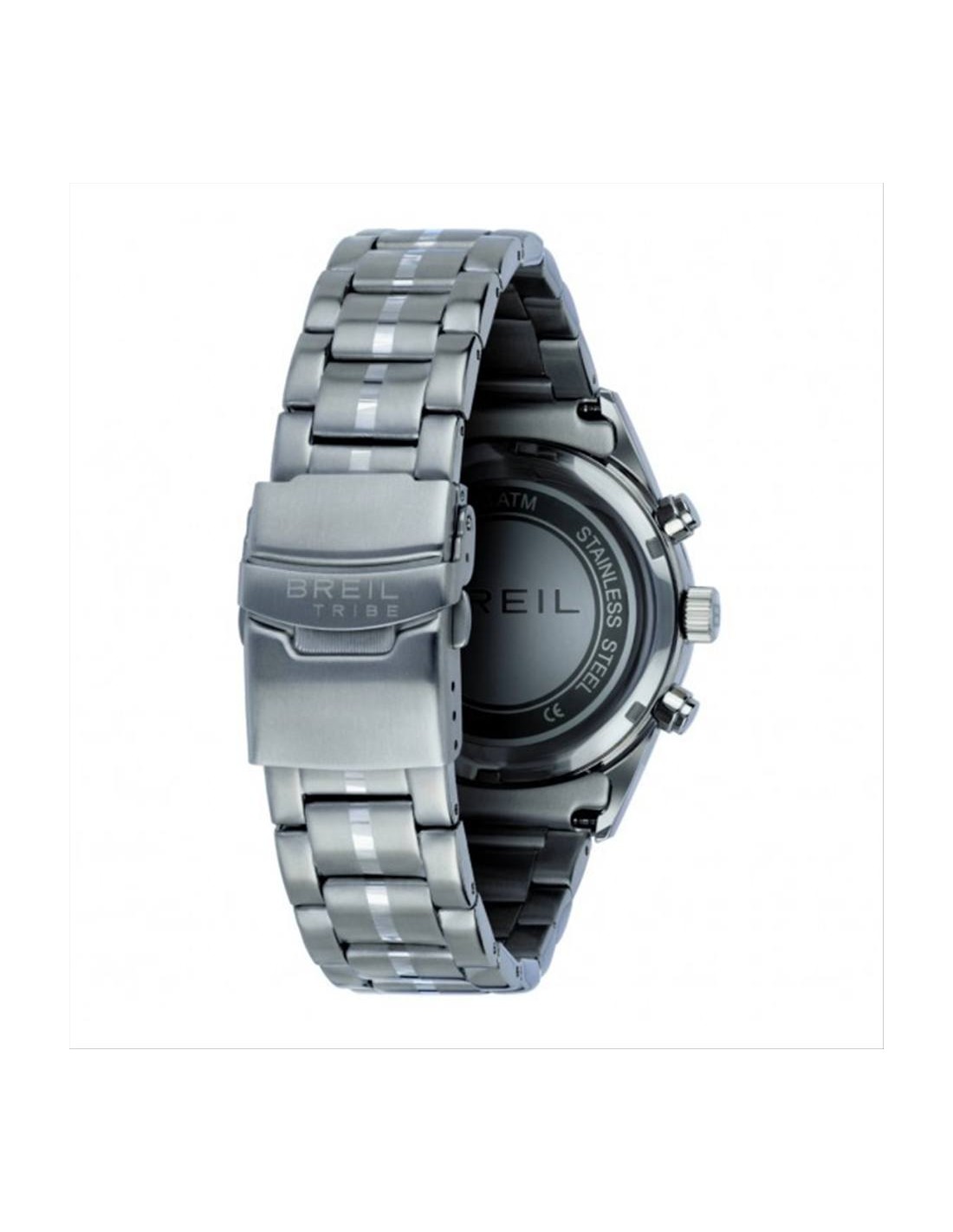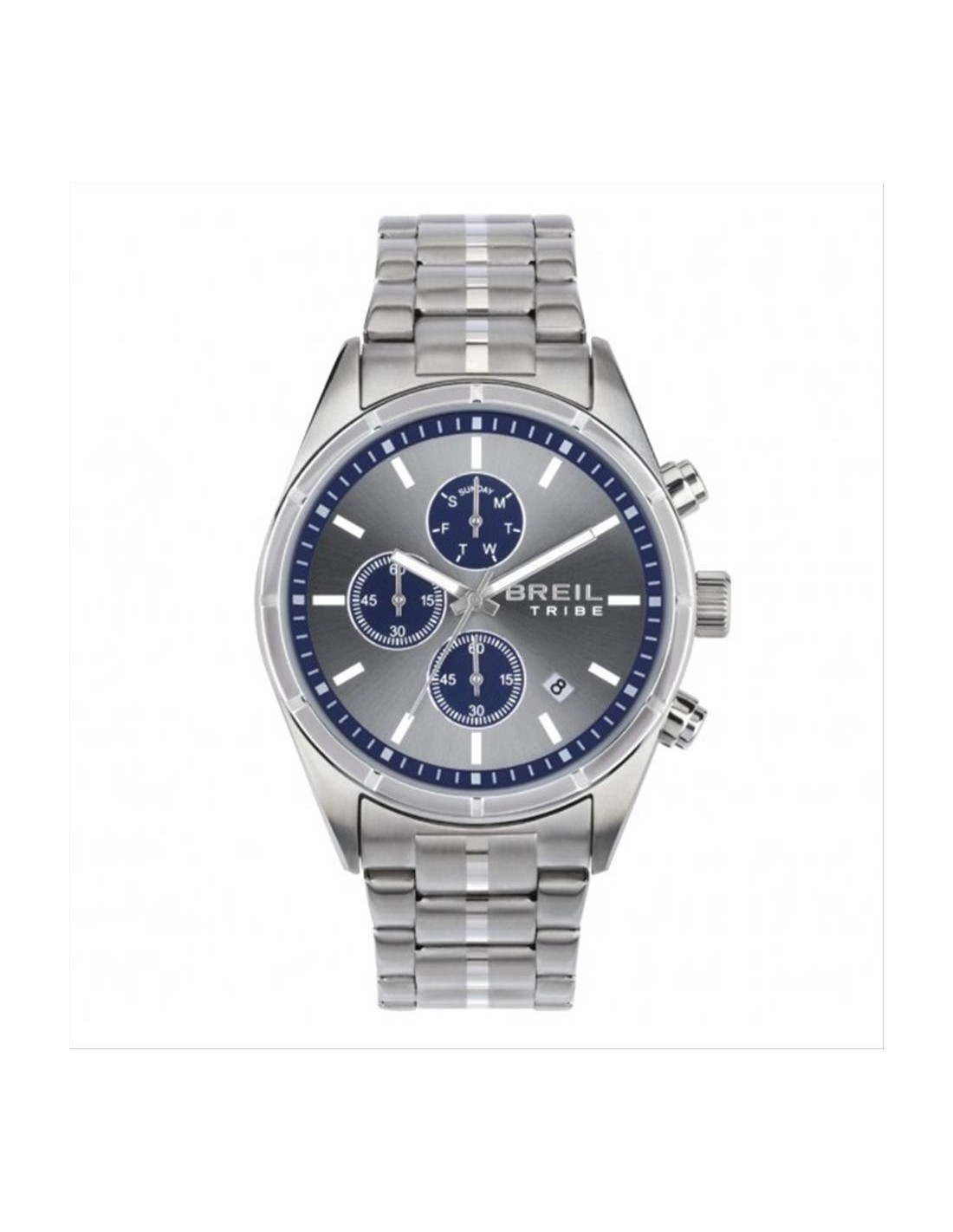 Orologio Breil Tribe Captain, cronografo uomo. Cassa rotonda in acciaio da 42 mm, quadrante grigio con contatori del crono blu e lancette luminescenti, movimento al quarzo, e vetro minerale, datario alle ore 4. Cinturino in acciaio silver. Impermeabilità di 10 atm.