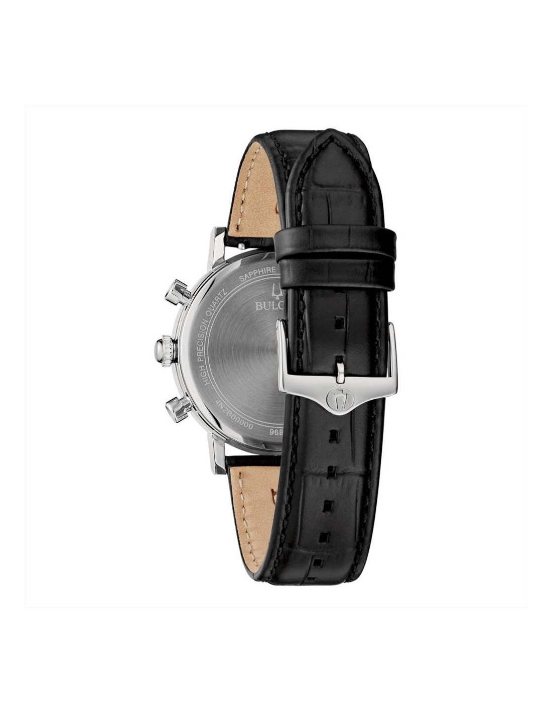 Orologio Bulova High Precision, cronografo uomo. Cassa in acciaio da 39 mm, quadrante celeste con indici e lancette silver, vetro zaffiro, movimento al quarzo precisionist 262 Khz, datario alle ore 4, e cinturino in pelle nero. Impermeabilità di 3 atm.