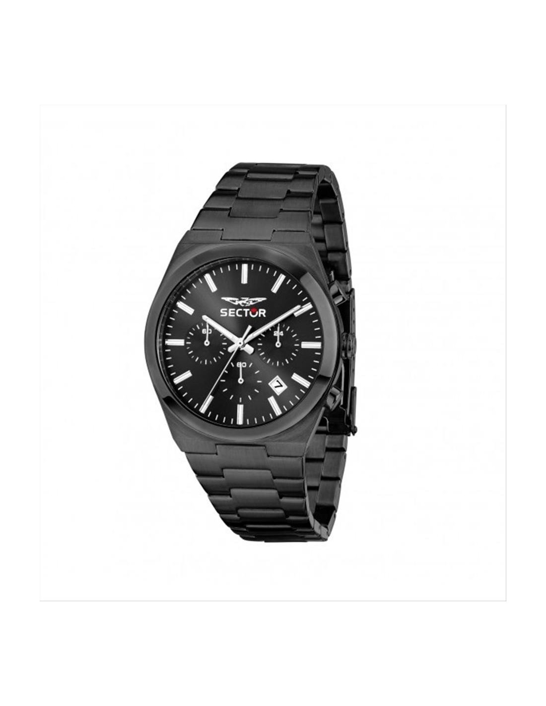 Orologio Sector C300, cronografo uomo. Cassa in acciaio pvd nero da 42 mm, quadrante nero con indici e lancette luminescenti, e datario a ore 4. Vetro minerale e movimento al quarzo. Cinturino in acciaio pvd nero. Impermeabilità di 5 atm.