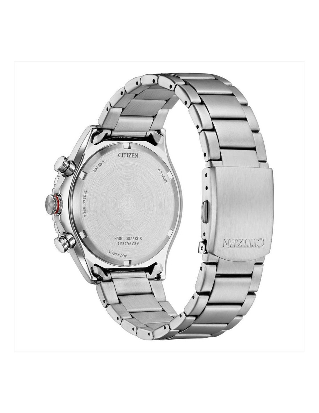 Orologio Citizen Marine Crono, cronografo uomo. Cassa in acciaio con fondo serrato a vite da 43 mm, quadrante nero con indici e lancette luminescenti, datario a ore 4. Lunetta con inserto in alluminio color nero e rosso. Vetro minerale e movimento eco drive a carica luce con riserva di carica di 180 giorni. Cinturino in acciaio e impermeabilità di 10 atm.